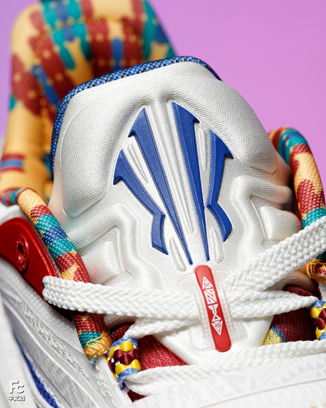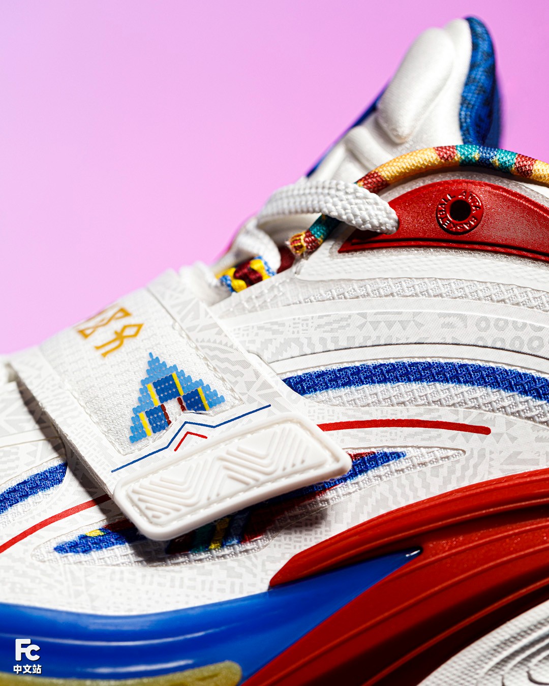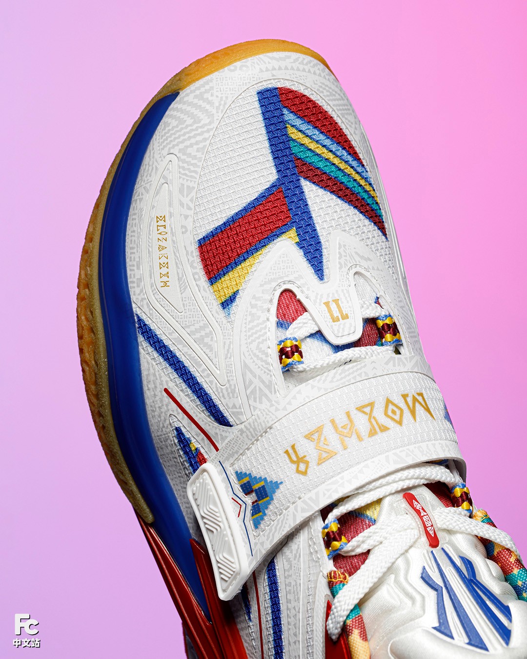 不过和当年那些千篇一律的花卉主题不同,安踏选择以另一种特别的方式致敬欧文母亲,那就是融入「立苏岩族」的传统纹样,比如鞋头这里的图案。