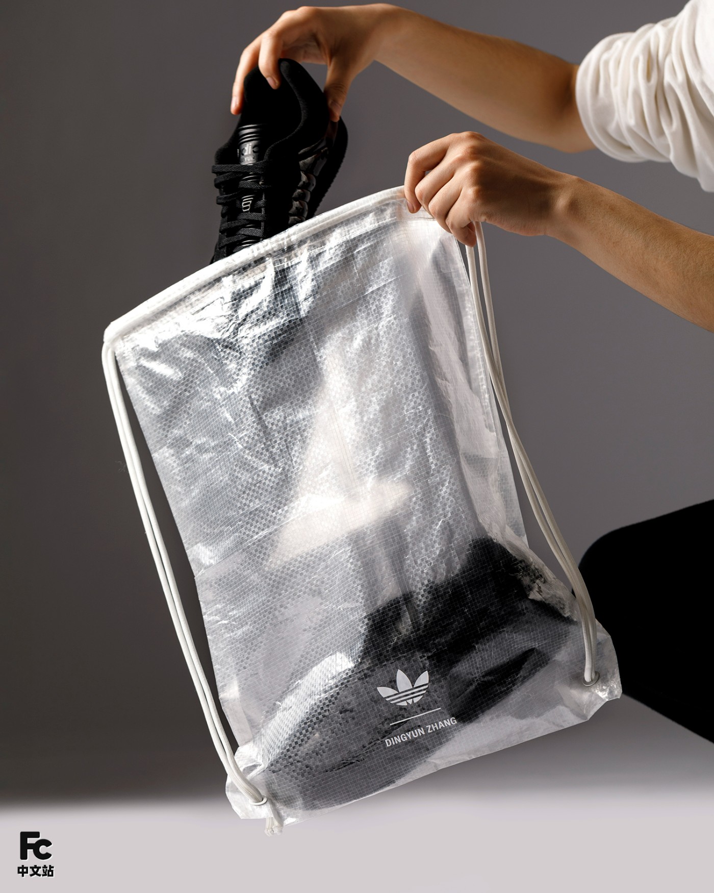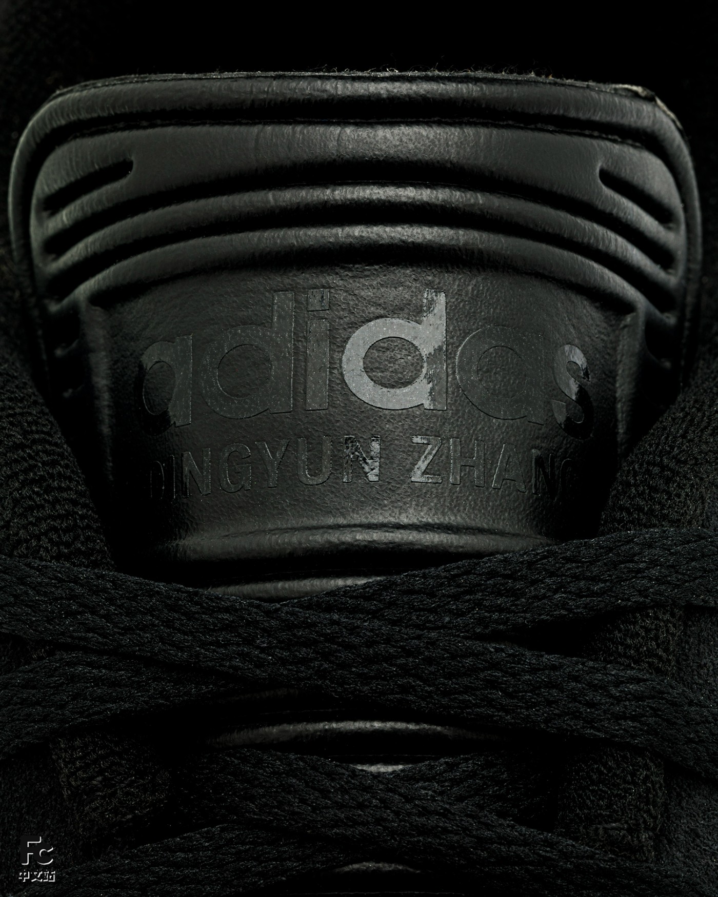 鞋侧三道杠上设计有透气孔,鞋舌上饰有 adidas 和 Dingyun Zhang 字样,通过小细节彰显联名身份。