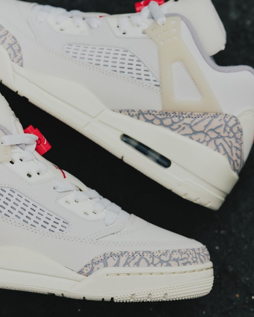 像是 Air Jordan 3 的爆裂纹、Air Jordan 4 的鞋带扣、Air Jordan 5 的网格,集经典设计于一身。