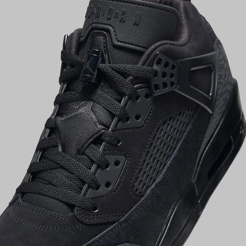 伴随着热度,最近 Jordan Brand 也带回了经典的 Jordan Spizike,并且近日曝光一双纯黑低帮版本,十分帅气。