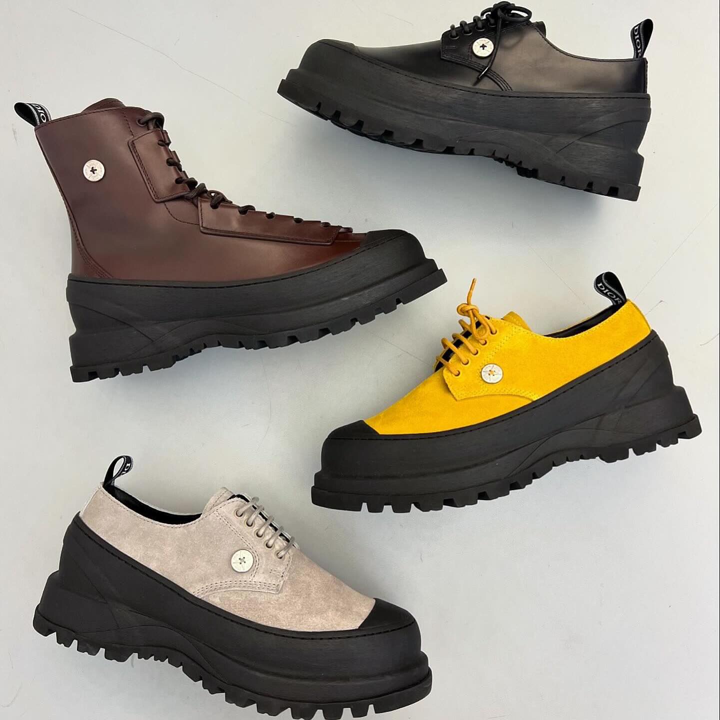 除了服饰外,双方此番合作同样涉及鞋款,不仅有 Dior 自家的 B30 老爹鞋、B33 板鞋,还包括多双撞色拼接风格的皮靴。