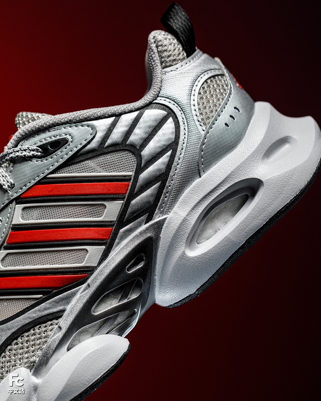侧身三线、鞋舌气囊标签、鞋带头和尾标等细节部分以红色呈现,起到画龙点睛的吸睛效果,同时释放活力气息。