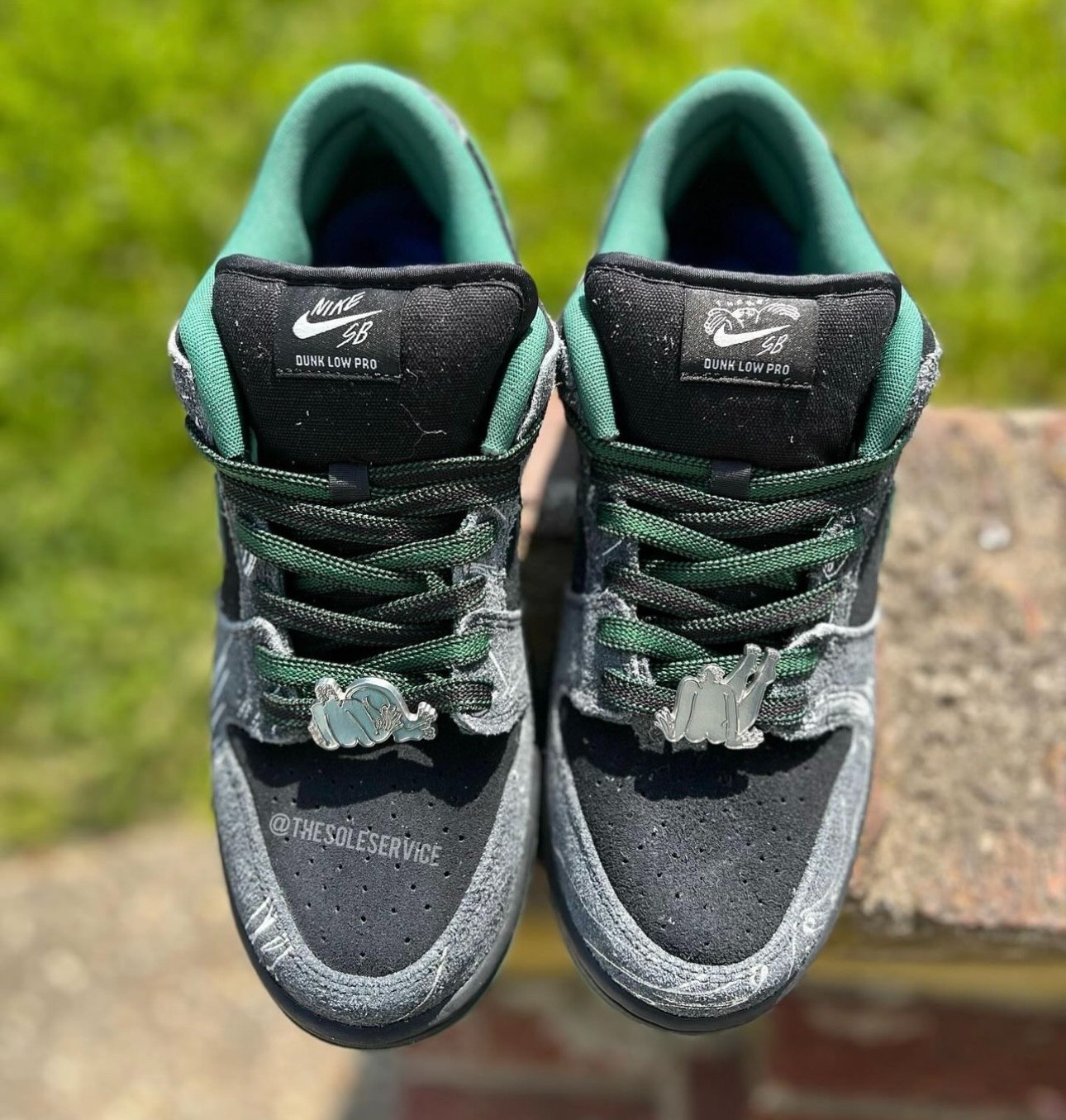 近日,此前曝光的滑板品牌 There Skateboards 联名 Dunk SB 迎来实物释出,许多细节终于能看清了!