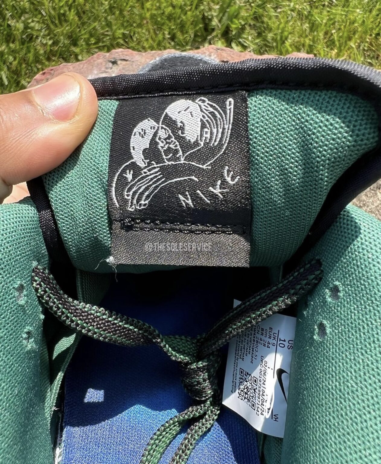 后跟以鸳鸯样式的 THERE 和 NIKE 刺绣彰显联名身份。