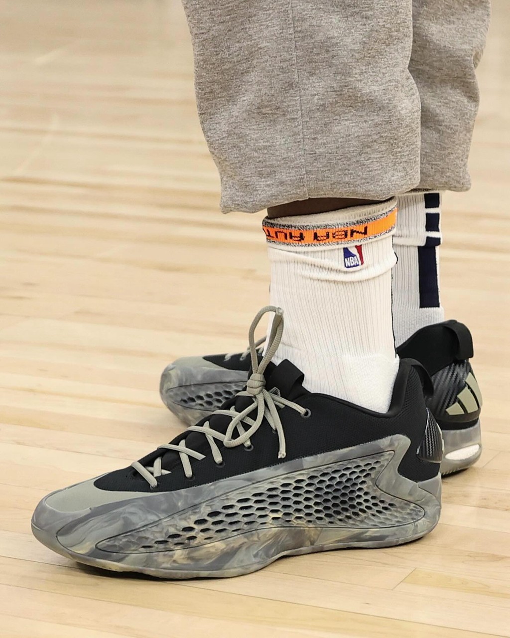 正是这双灰色大理石配色的 adidas AE1 Low,帮助华子带领森林狼夺得胜利。