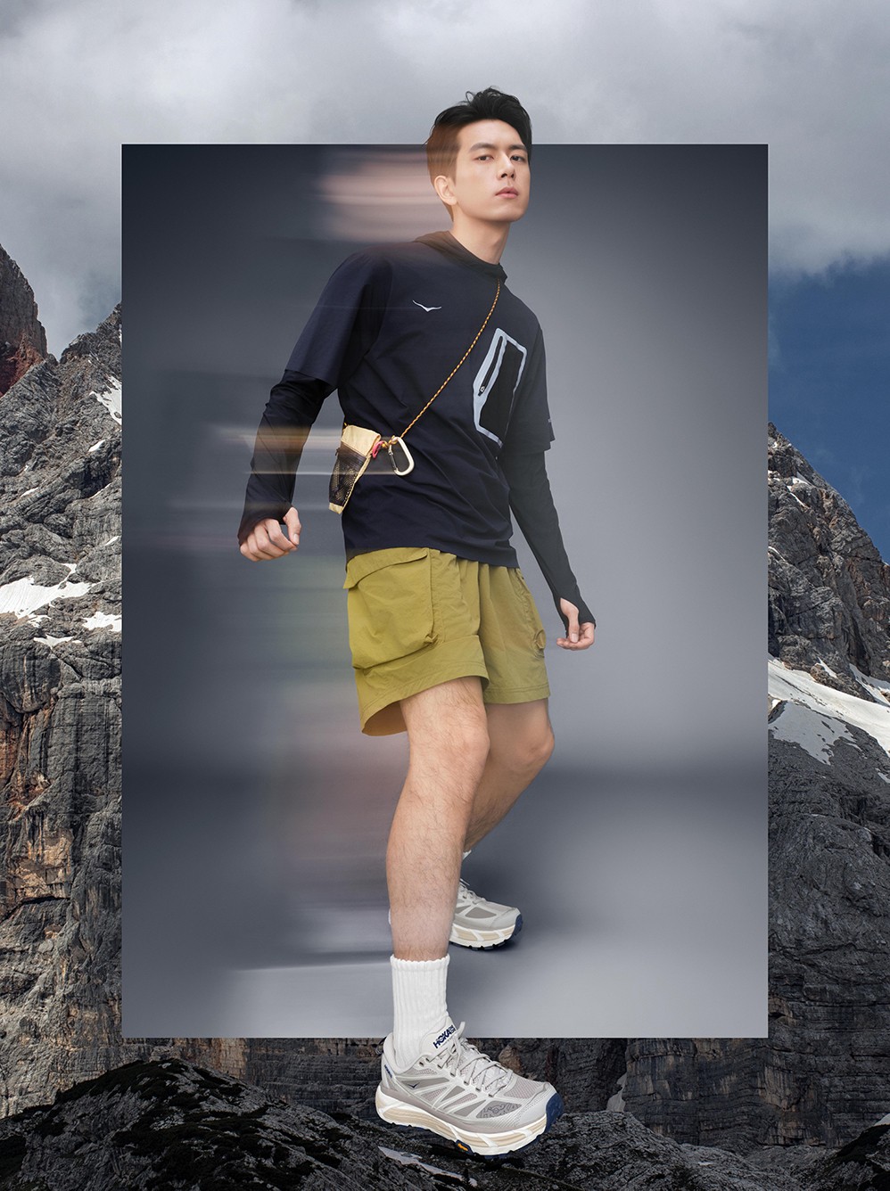 李现提前上脚为大家展示出如何搭配这双人气新品,短裤 + 长袜的造型,穿出最经典的夏日穿搭公式。
