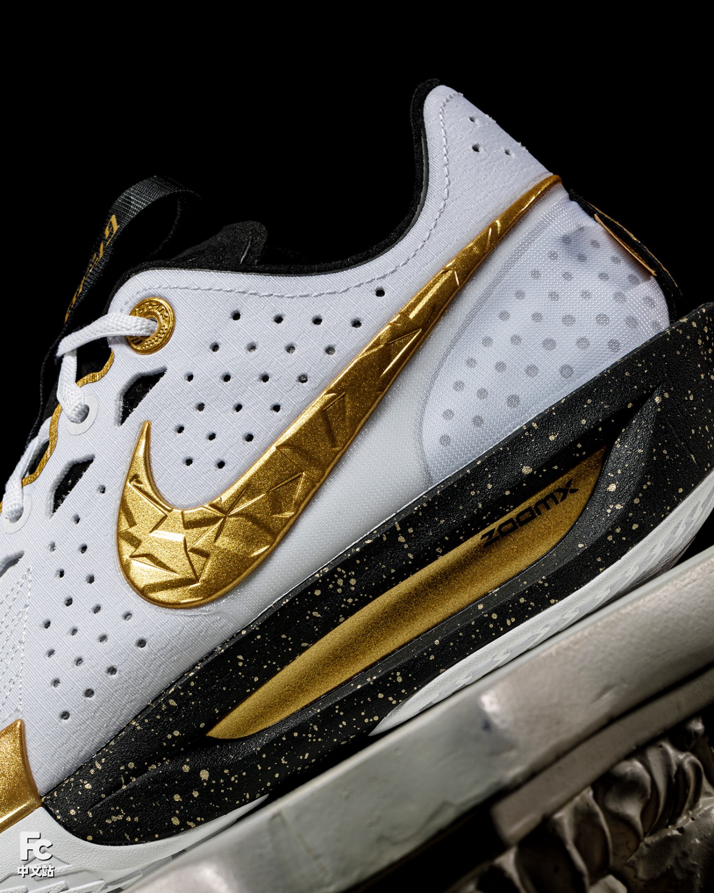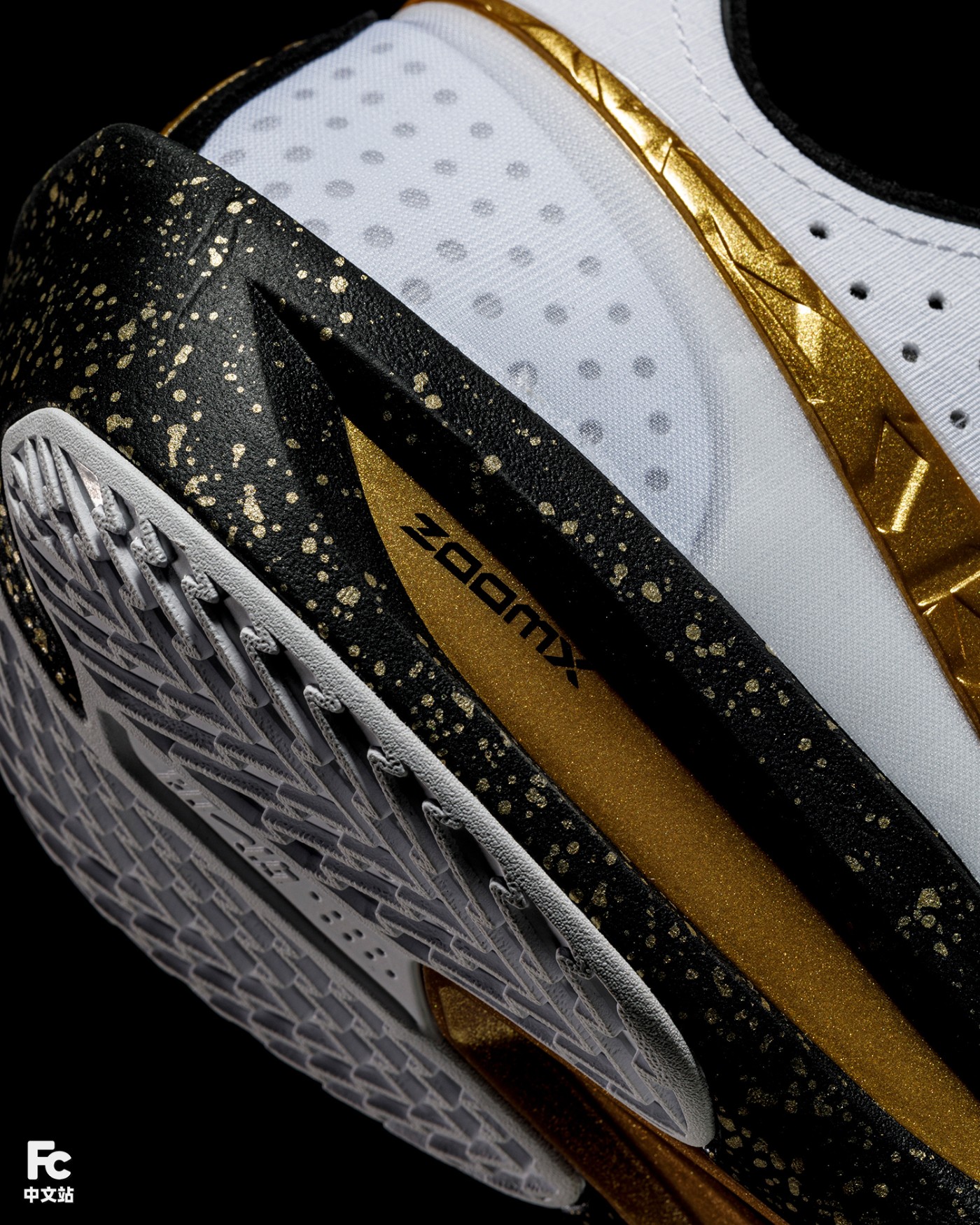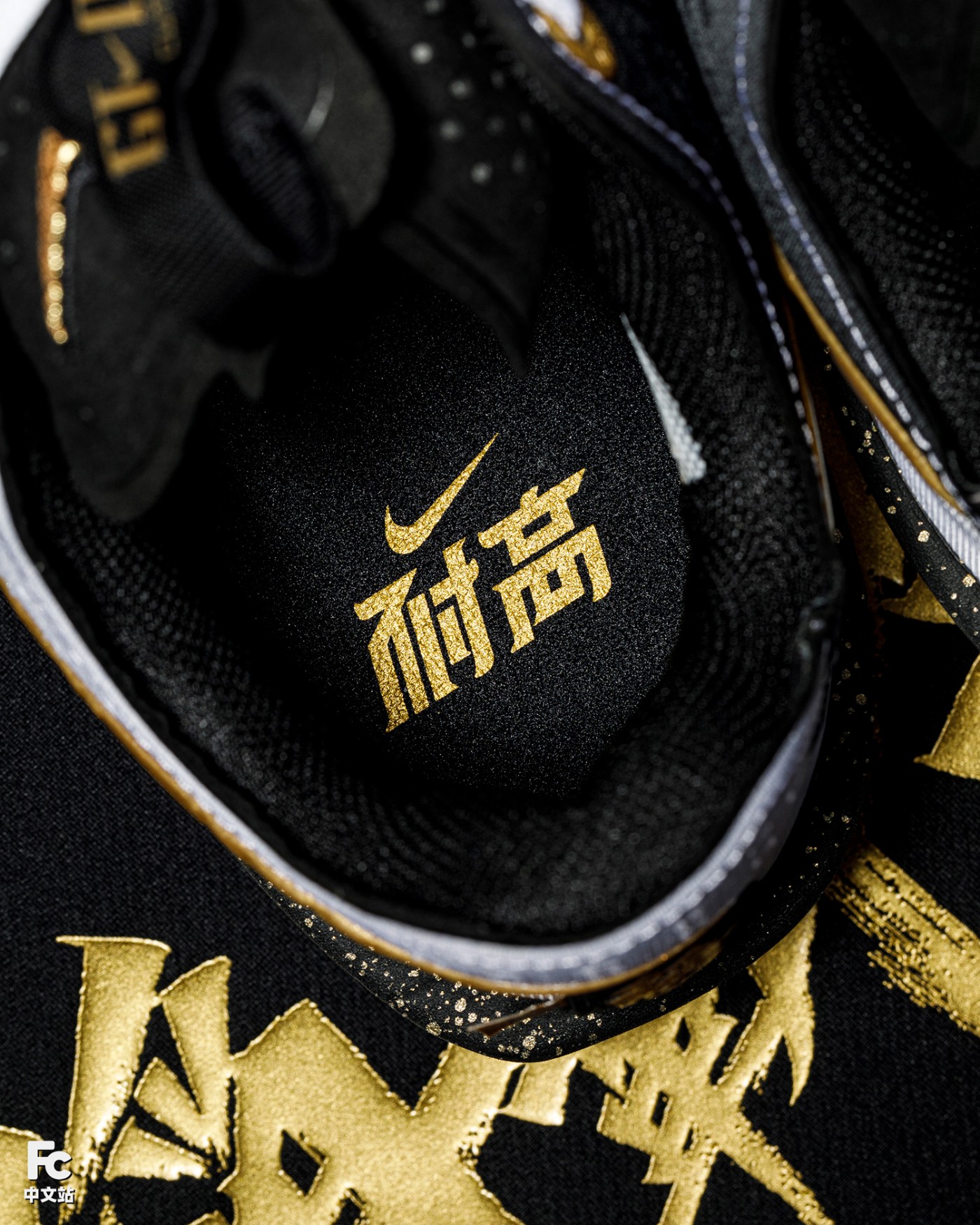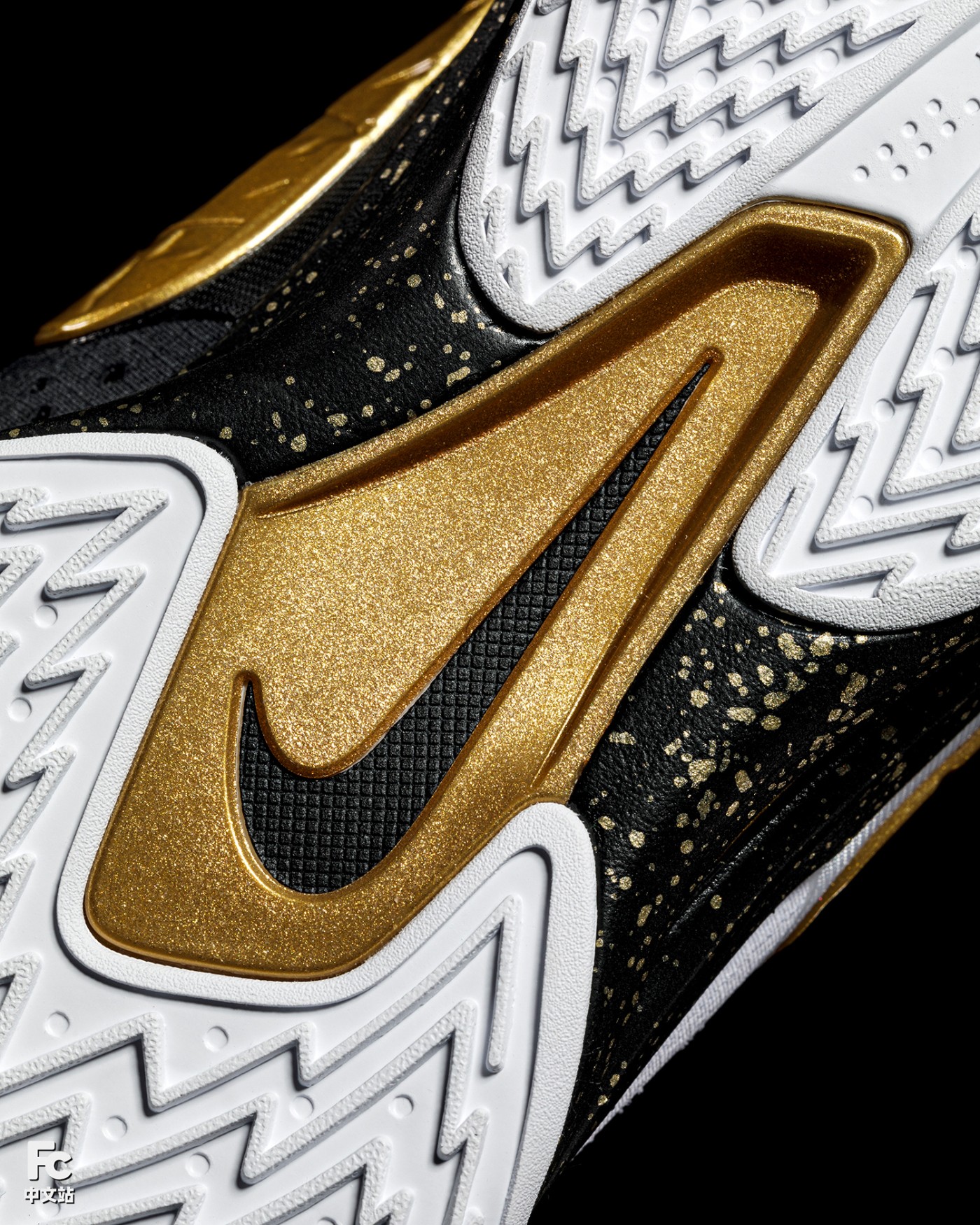 细节方面更是可圈可点,黑金泼墨中底与立体刻画的 Swoosh 相呼应,视觉层次进一步凸显。