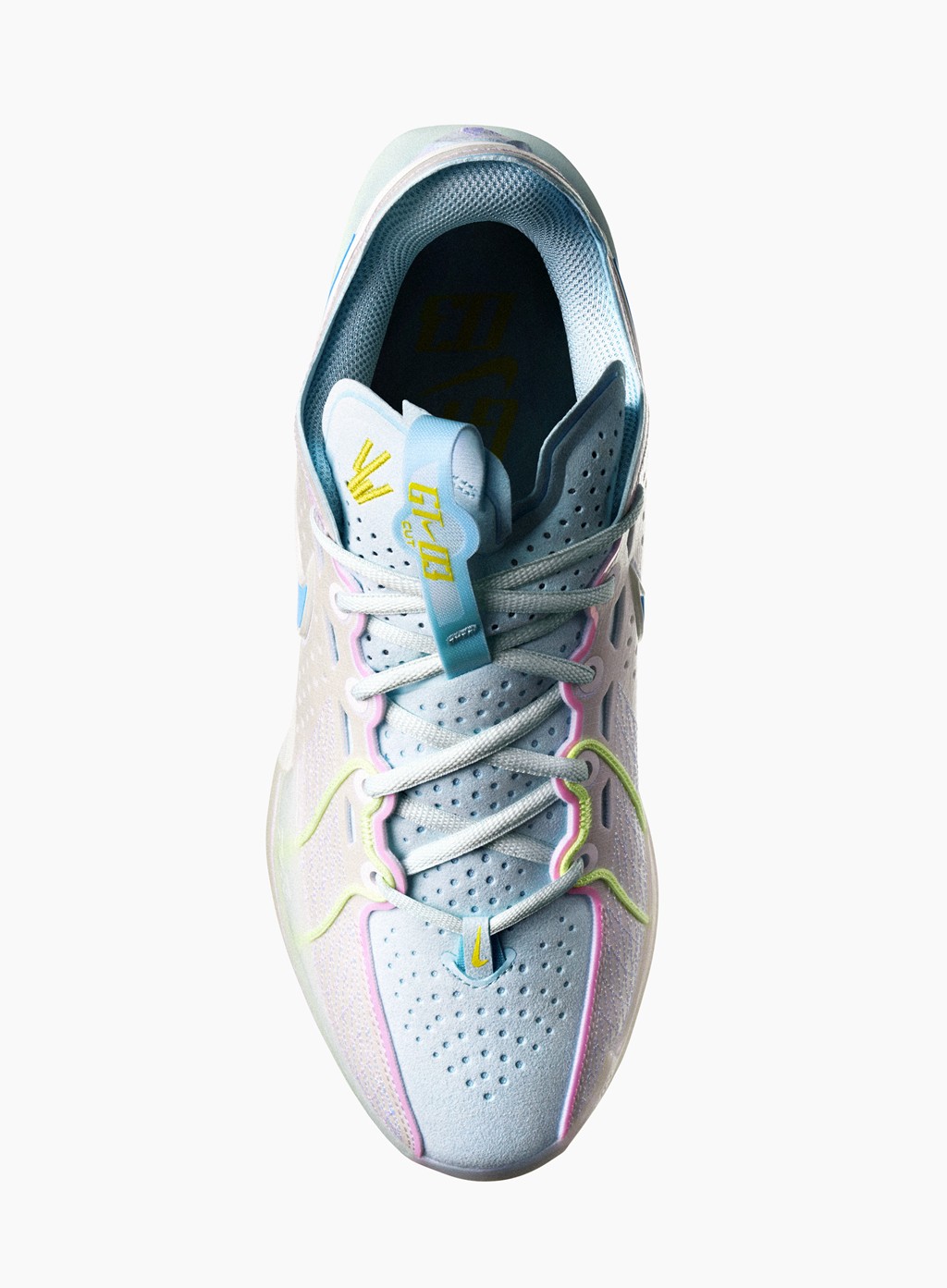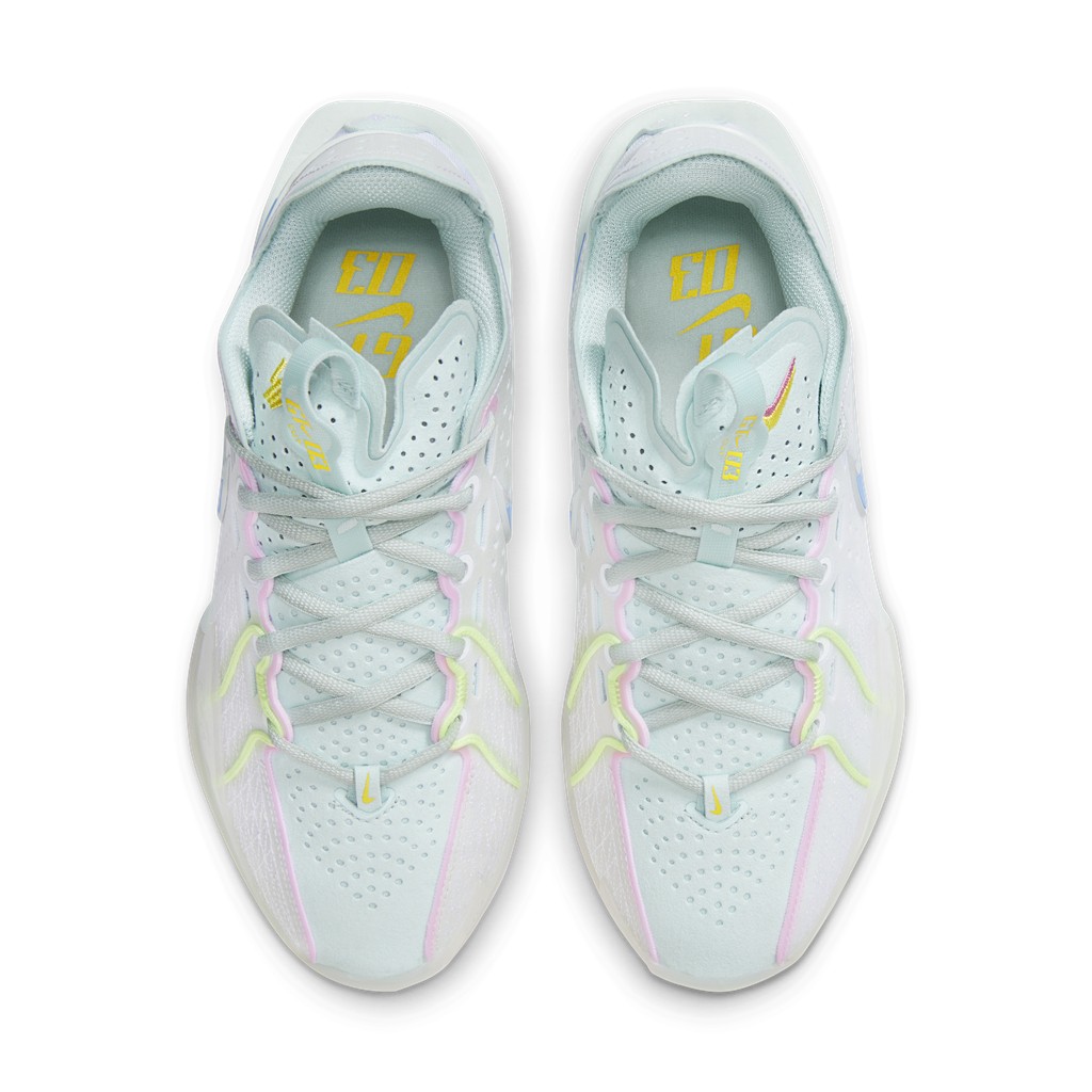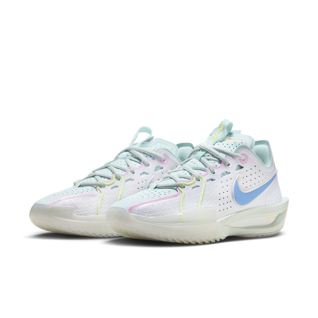 鞋型选择了目前最新的 Nike G.T. Cut 3,配色灵感来自杨力维的故乡昆明,鞋身的淡蓝色代表昆明的蓝天。