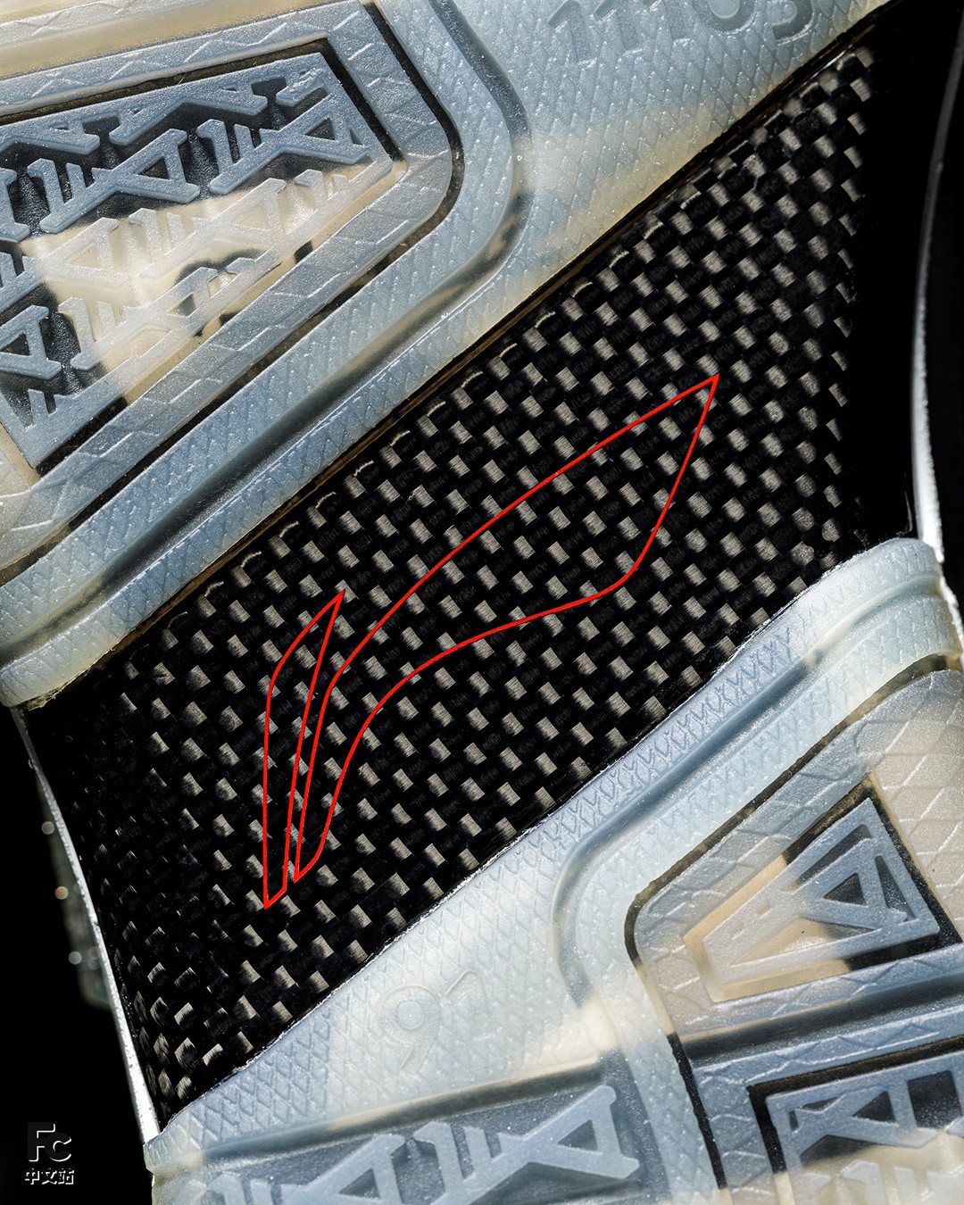 来到外底,半透明材质里面的图案来自宇航服的鞋底,参考阿波罗登月在月球留下的脚印。