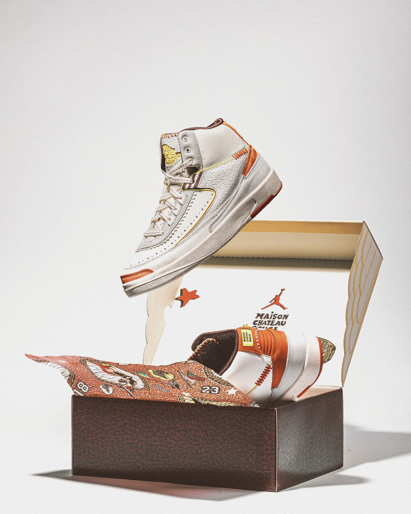 邀请巴黎时尚品牌 Maison Chateau Rouge 搭载的 AJ2 联名,将他们拿手的非洲异域风情,通过鞋剪裁、纹理及涂鸦元素注入设计。