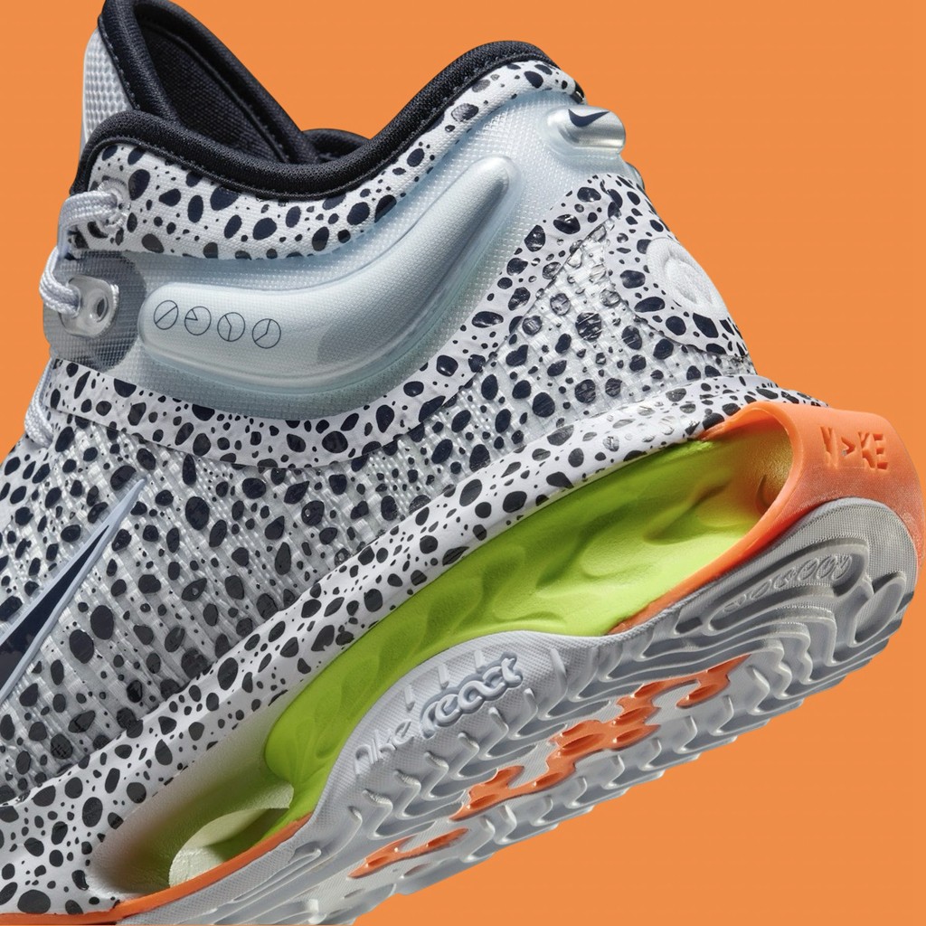 继 Nike G.T. Cut 3 后,同系列的 G.T. Jump 2 也迎来同款奥运配色! 鞋面依然覆盖 Safari 石斑纹图案,在球场上绝对回头率拉满。 和 G.T. Cut 3 稍有区别的是,这双在细节部分的彩色更多。 荧光绿搭配橙色,放在层次感科技感都拉满的中底上,显得尤为吸睛。 登场日期定在 7 月 24 日,现在看来,恐怕这个系列还不止这两双,各位不妨保持期待。