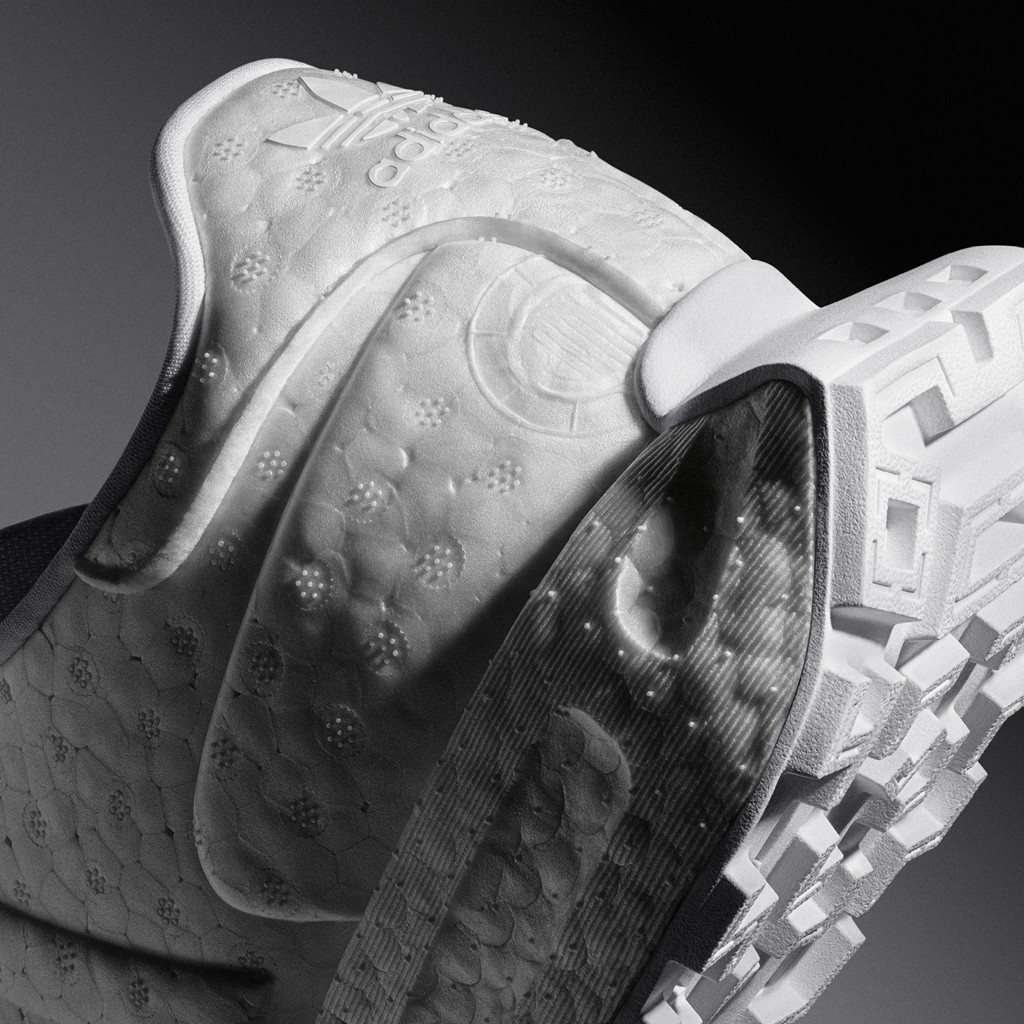 CG RETROPY BOOST 在保留了原有鞋型的轮廓基础上,将 BOOST 科技延展到整个鞋底,视觉冲击感强烈,共有纯白、纯黑两款配色可供选择。