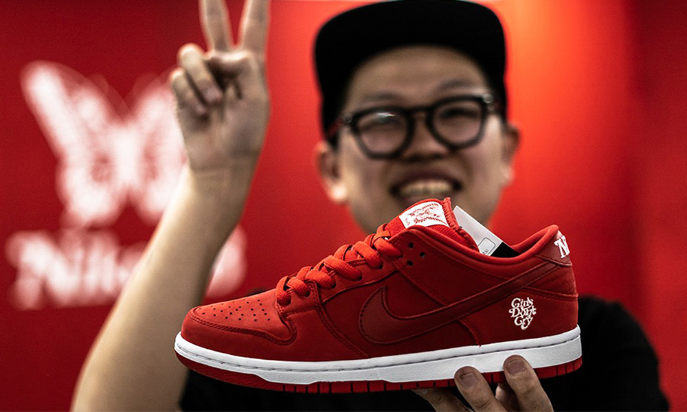 2019 年双方带来过一双 Nike SB Dunk Low Verdy Girls Don't Cry。