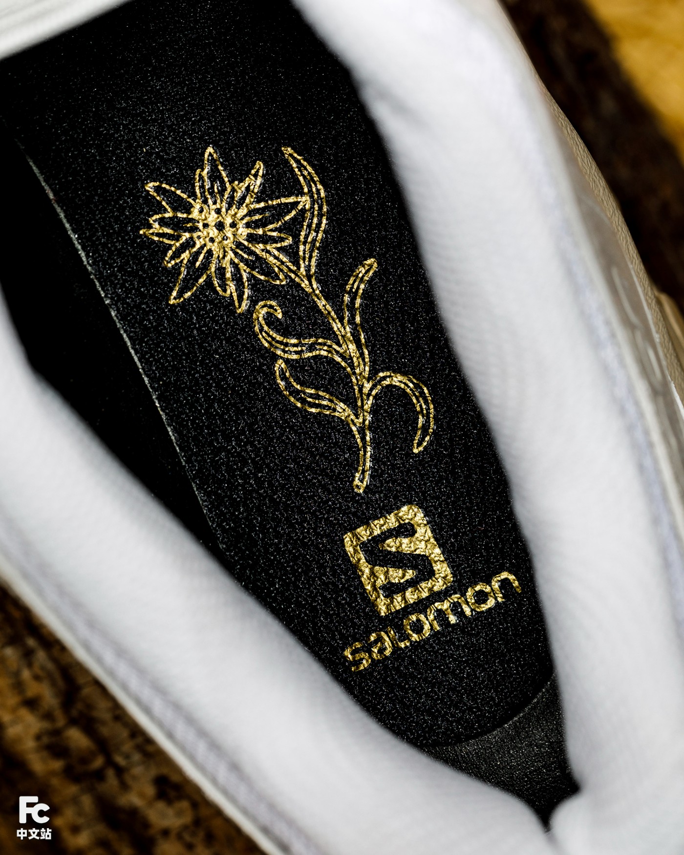 让人觉得很有新意的是,将盛开在高山的雪绒花图案藏于鞋舌与鞋垫处,细节眼前一亮。