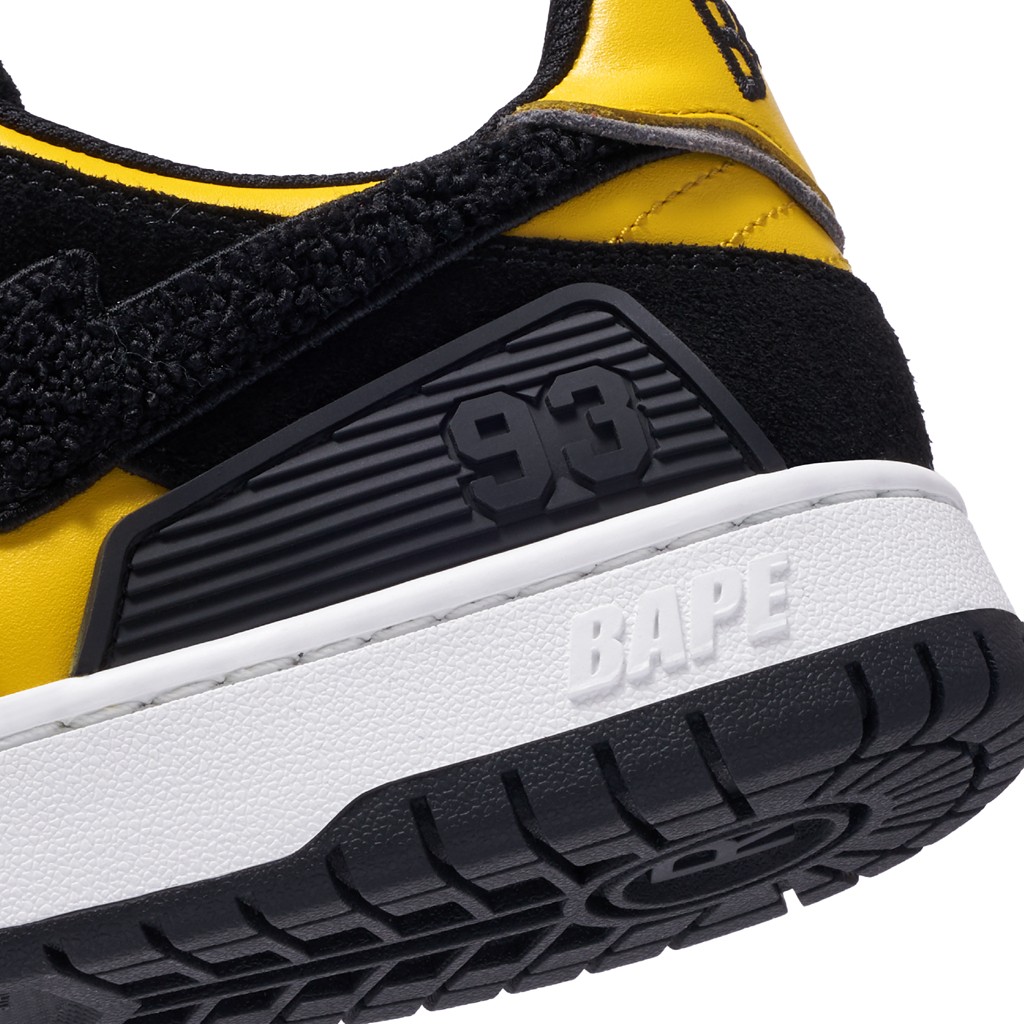 沿袭了 BAPE® 一贯考究的用料规格,以优质的麂皮和光面皮革材质打造,质感表现同样出众。