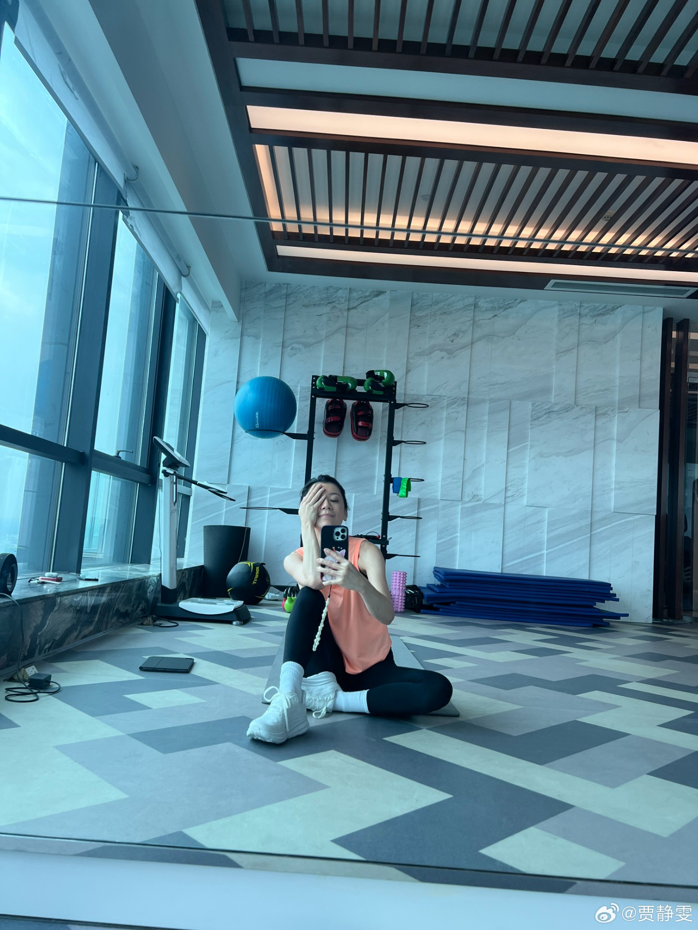 在健身房贾静雯则是选择了 HOKA ONE ONE Clifton 9。