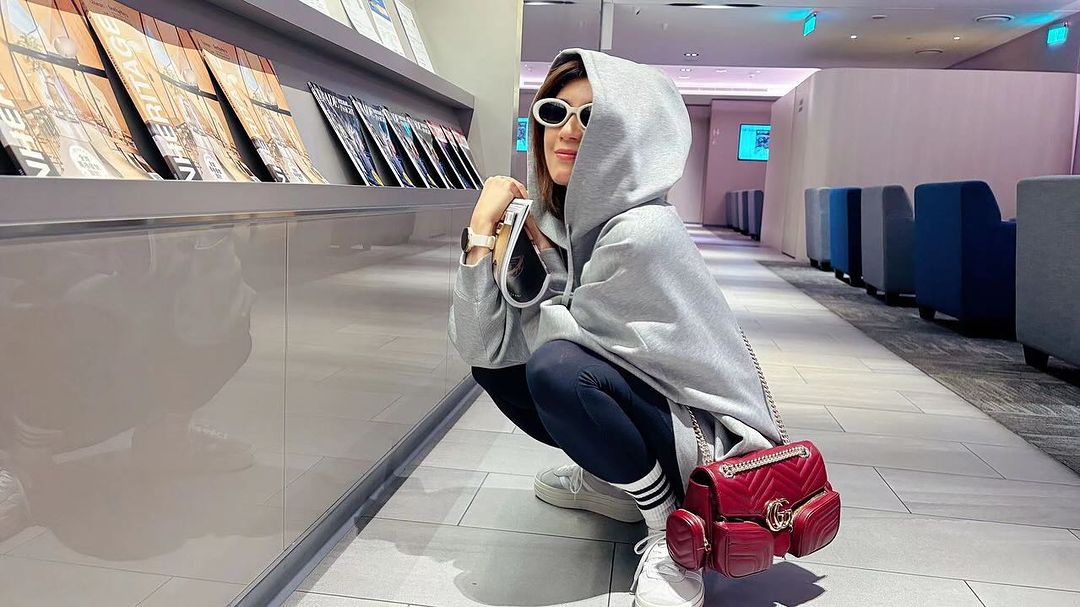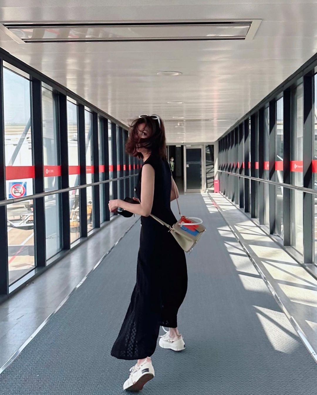 在机场穿搭中上脚了 xVESSEL,满满的少年气息,一点也不像是快 50 岁的人。