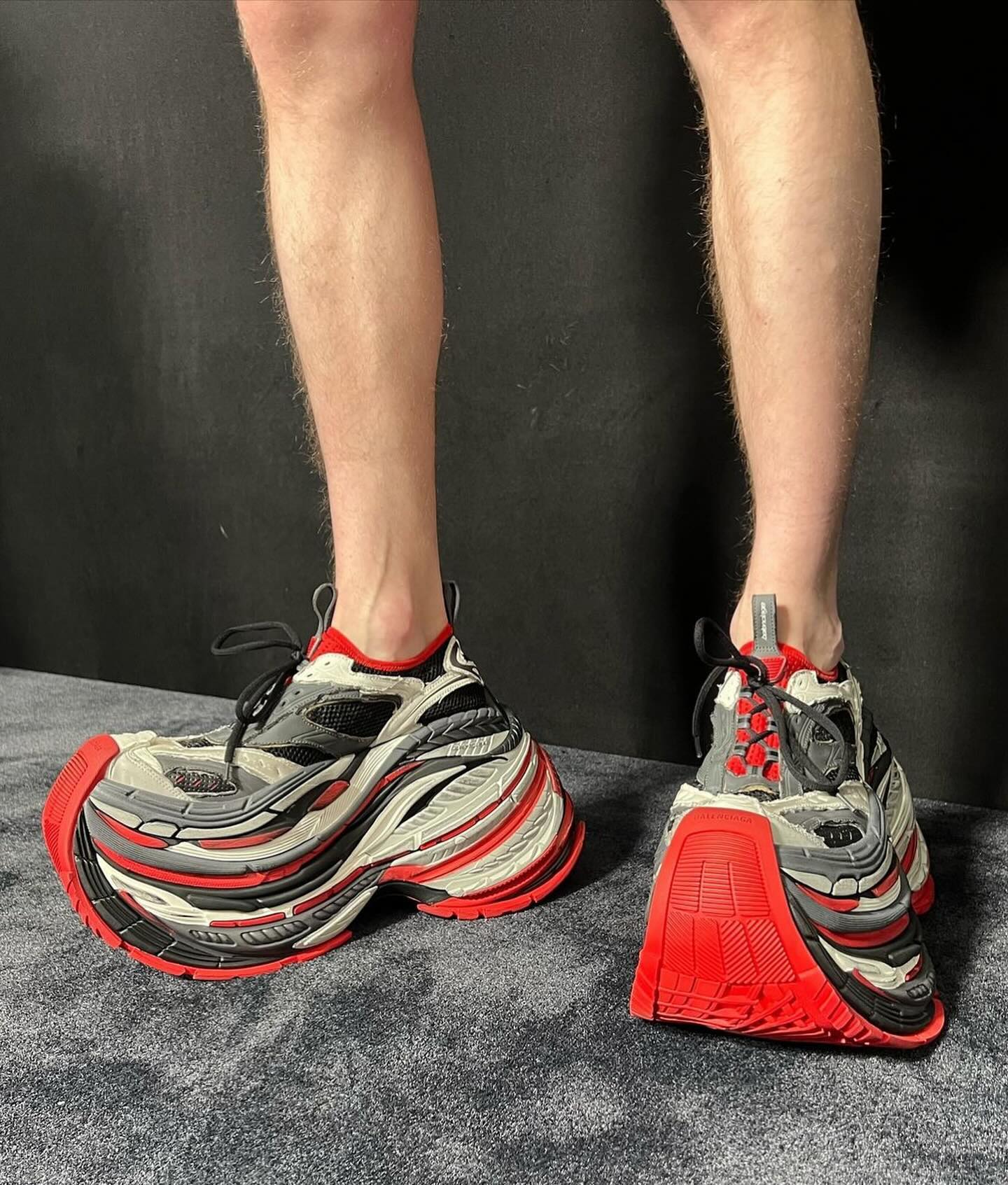 前段时间 BALENCIAGA 在官方社交账号预告了一双 16 厘米厚的 Platform 运动鞋,而实际上脚效果怎么样,现在终于能看到了。