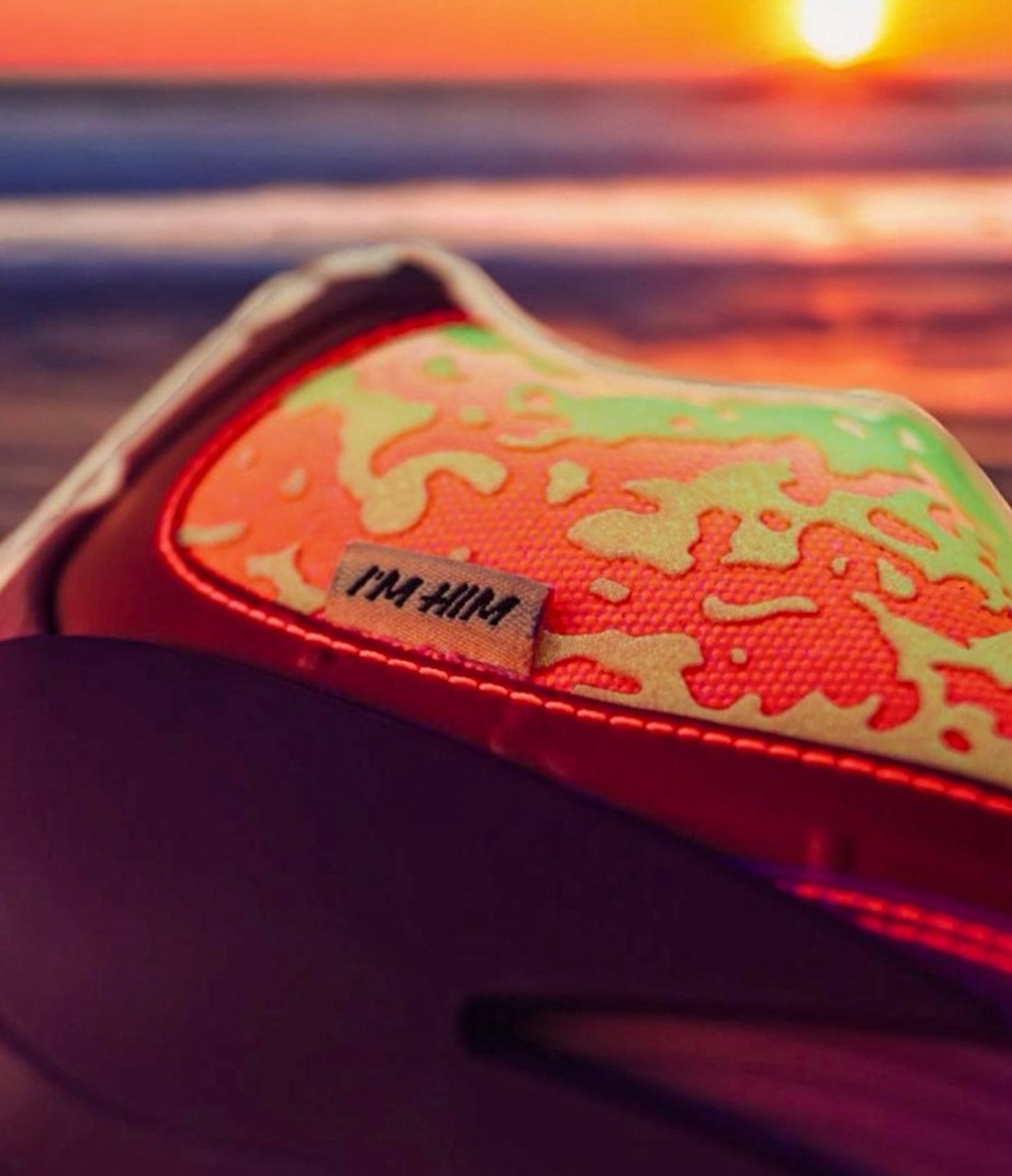 说回鞋款,Frank 用这双 PE 战靴,呈现了洛杉矶海滩日落的美丽景色,橙紫渐变让颜值稳稳拿捏。
