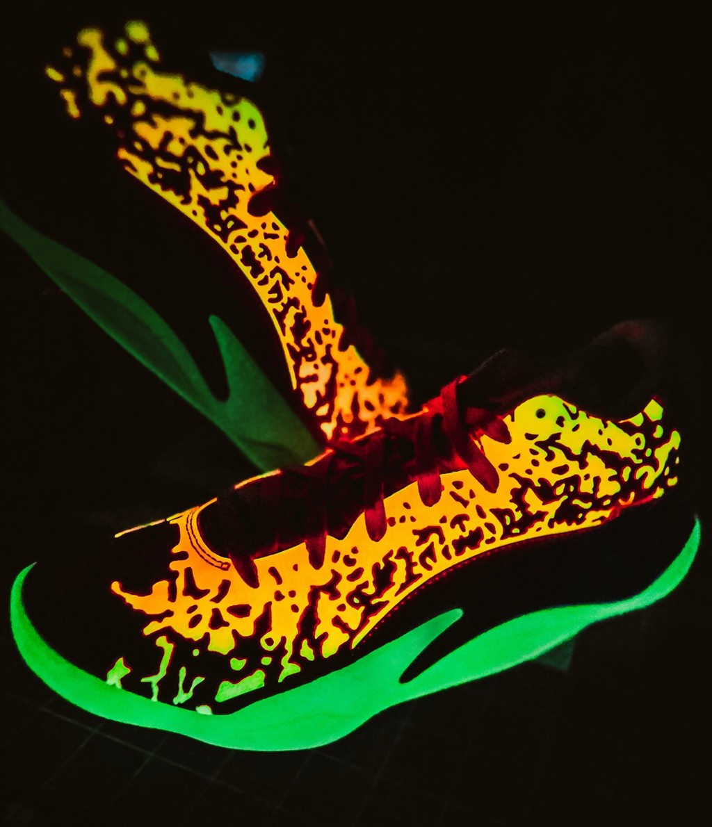 最最炸裂的是,整双鞋都暗藏十分酷炫的夜光效果,与 Frank 风骚的球风相契合。
