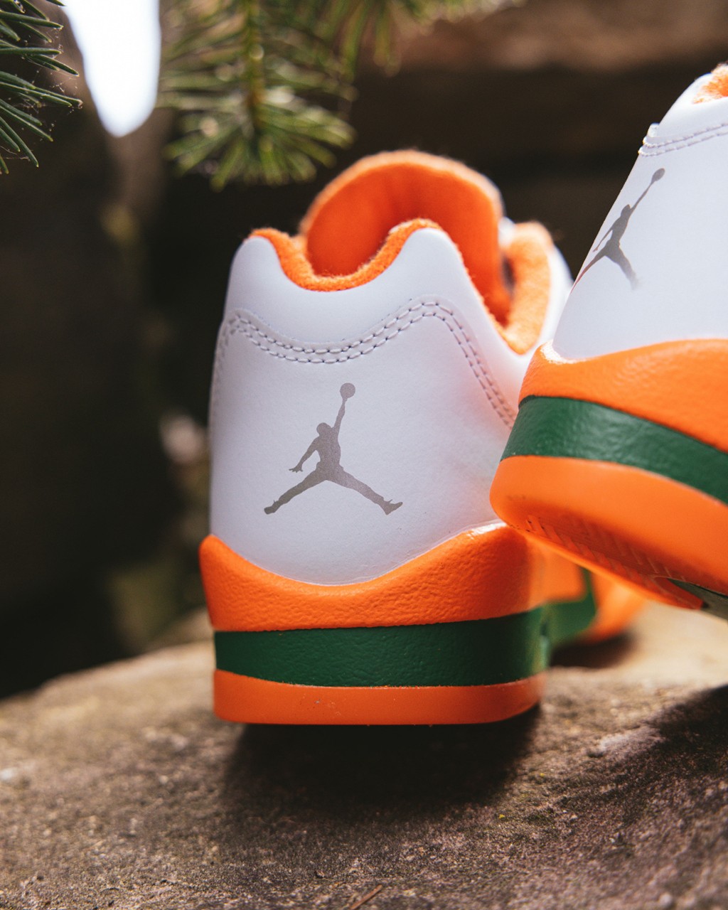 近日,一双全新配色 Air Jordan 5 Low 迎来实物美图。 配色以迈阿密飓风队为灵感,采用绿色搭配橙色营造热带氛围。 鞋面大面积白色则定下主基调,带来清爽的视觉效果。 低帮版也很适合夏季穿着,穿搭难度也不高。 据悉,全新配色 Air Jordan 5 Low 将于 6 月 6 日登场。 Pic via: dtlrofficial