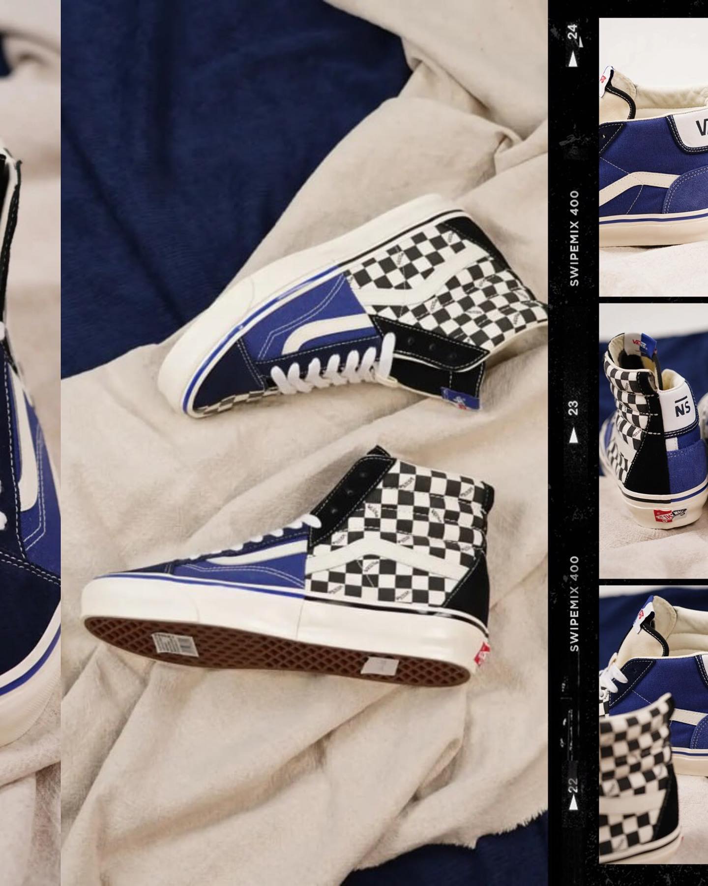 解构元素的球鞋大家都不陌生了,但像 Vans 这双玩的这么大的,确实不多见! 将 Vans 四款经典鞋型:Old Skool、Authentic、Mid Skool 以及 Sk8-Hi 相融合,让人眼前一亮。 配色方面,经典棋盘格搭配深蓝色,带来强烈的色彩冲击。 切割的后跟也是一大亮点,左右脚共同组合出完整的 Vans Logo。 目前,这双鞋暂无登场信息释出,后续消息我们将持续报道。 Pic via:getvansfits