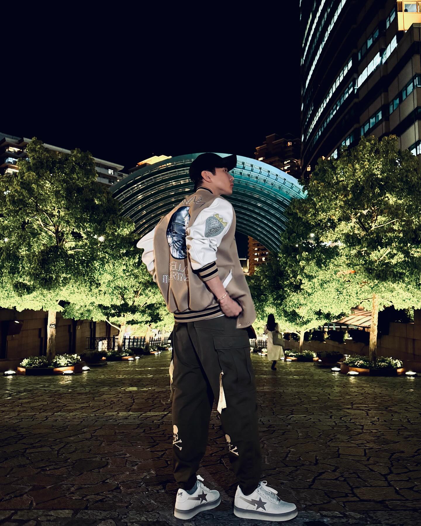 另一身造型,上身了 Stella McCartney x 空山基联名外套,脚上踩了双 BAPE STA™。