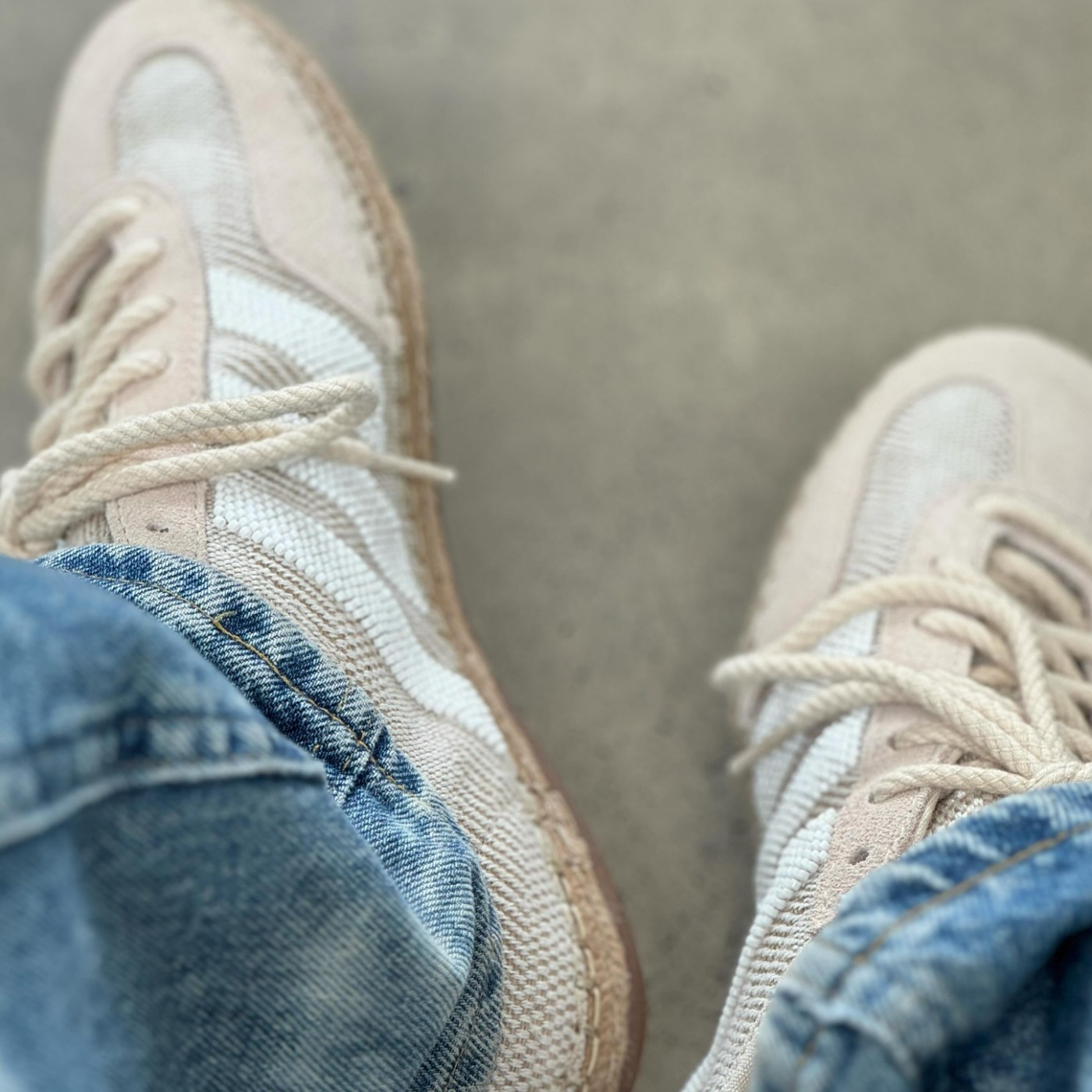 浅色调与麻布面料相得益彰,再加上粗制麻绳鞋带,营造出的氛围和夏天确实很配。