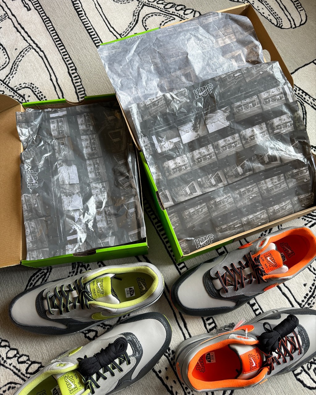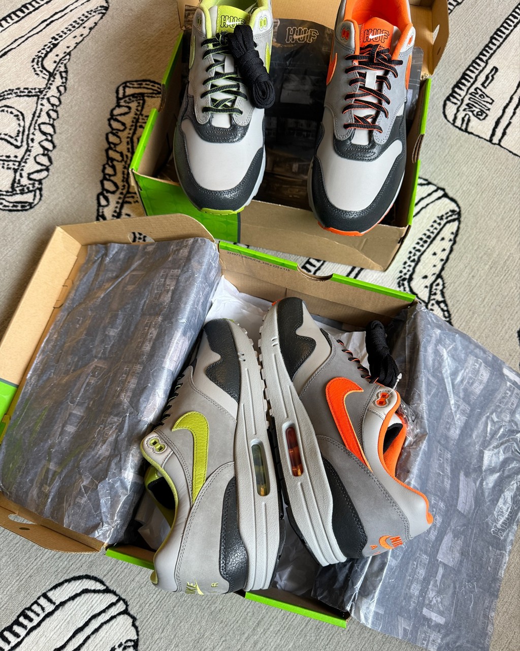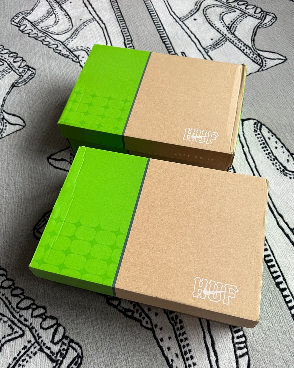 鞋盒进行了重新设计,右下角也印有 HUF x Nike 的 Logo。