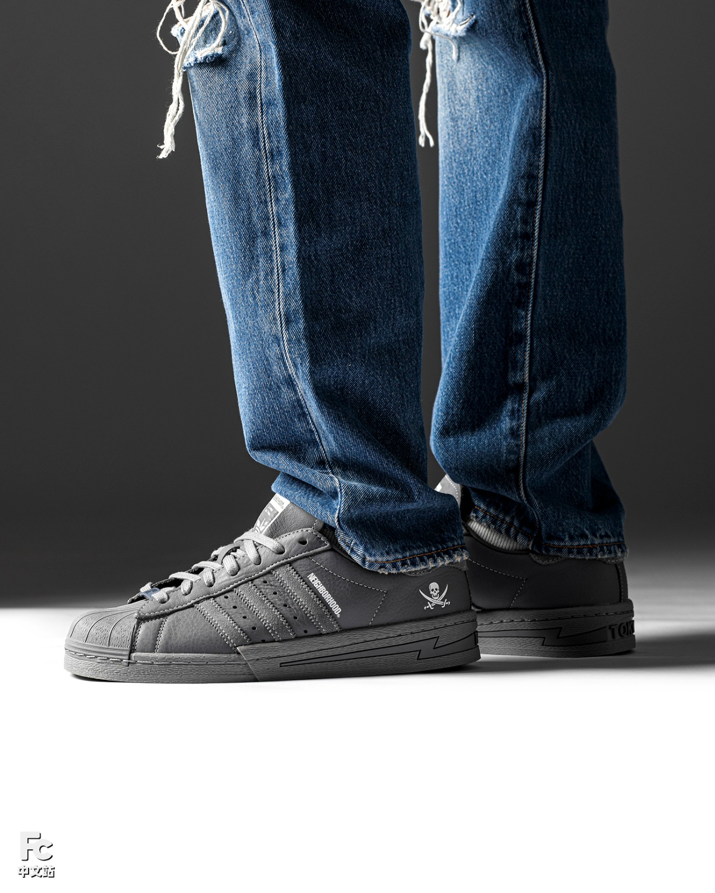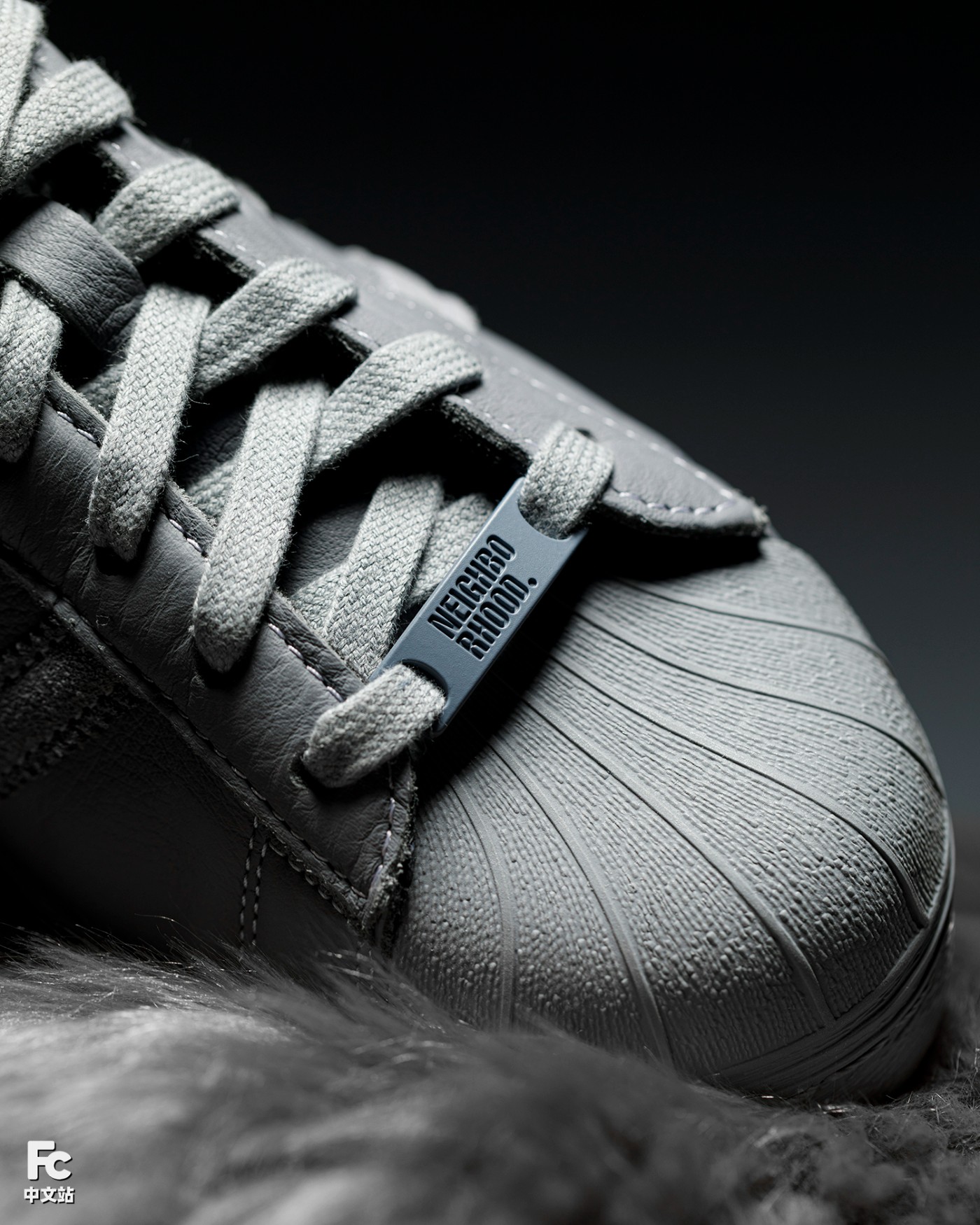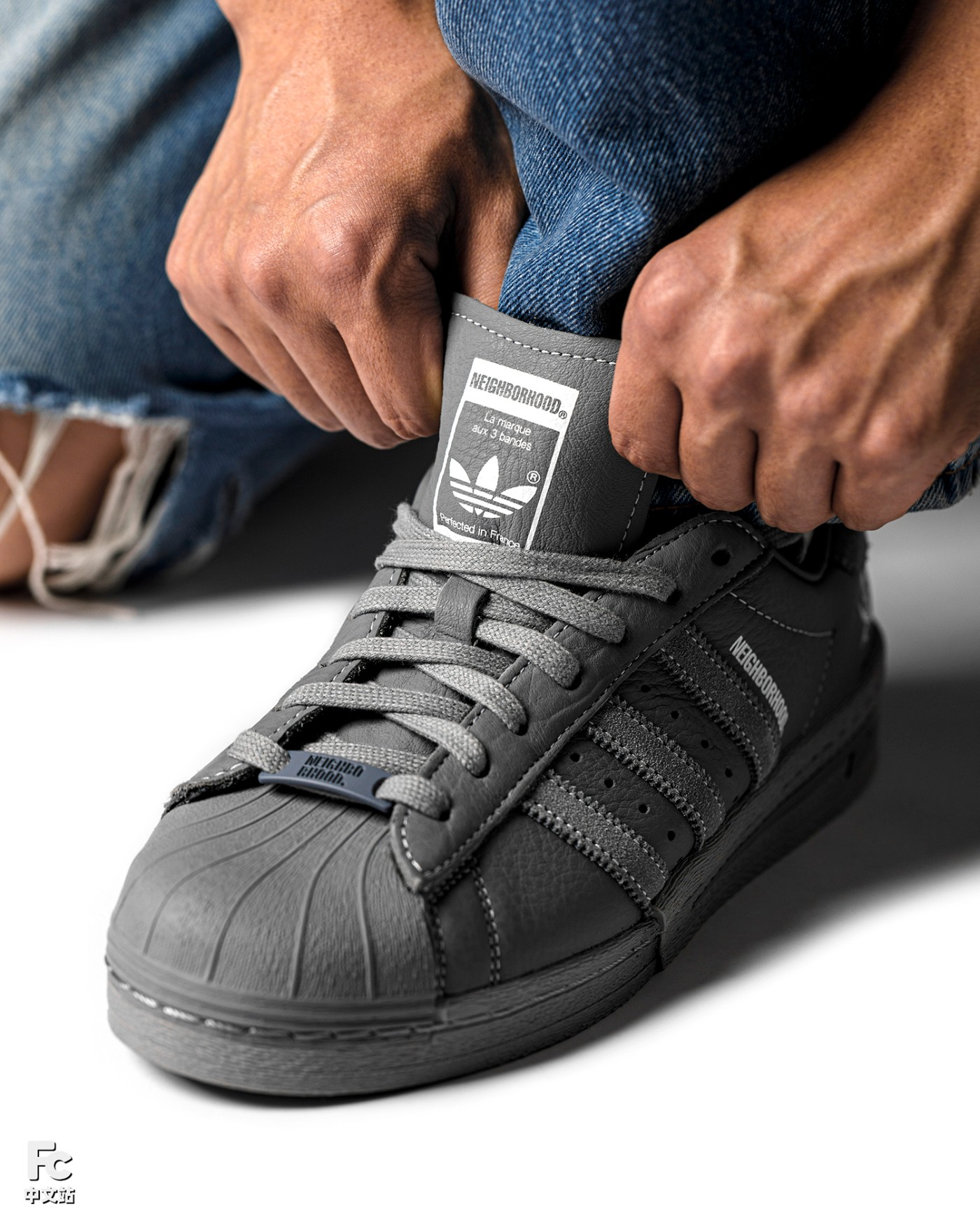 率先登场的全新 Superstar 采用 NEIGHBORHOOD 标志性灰色系呈现。