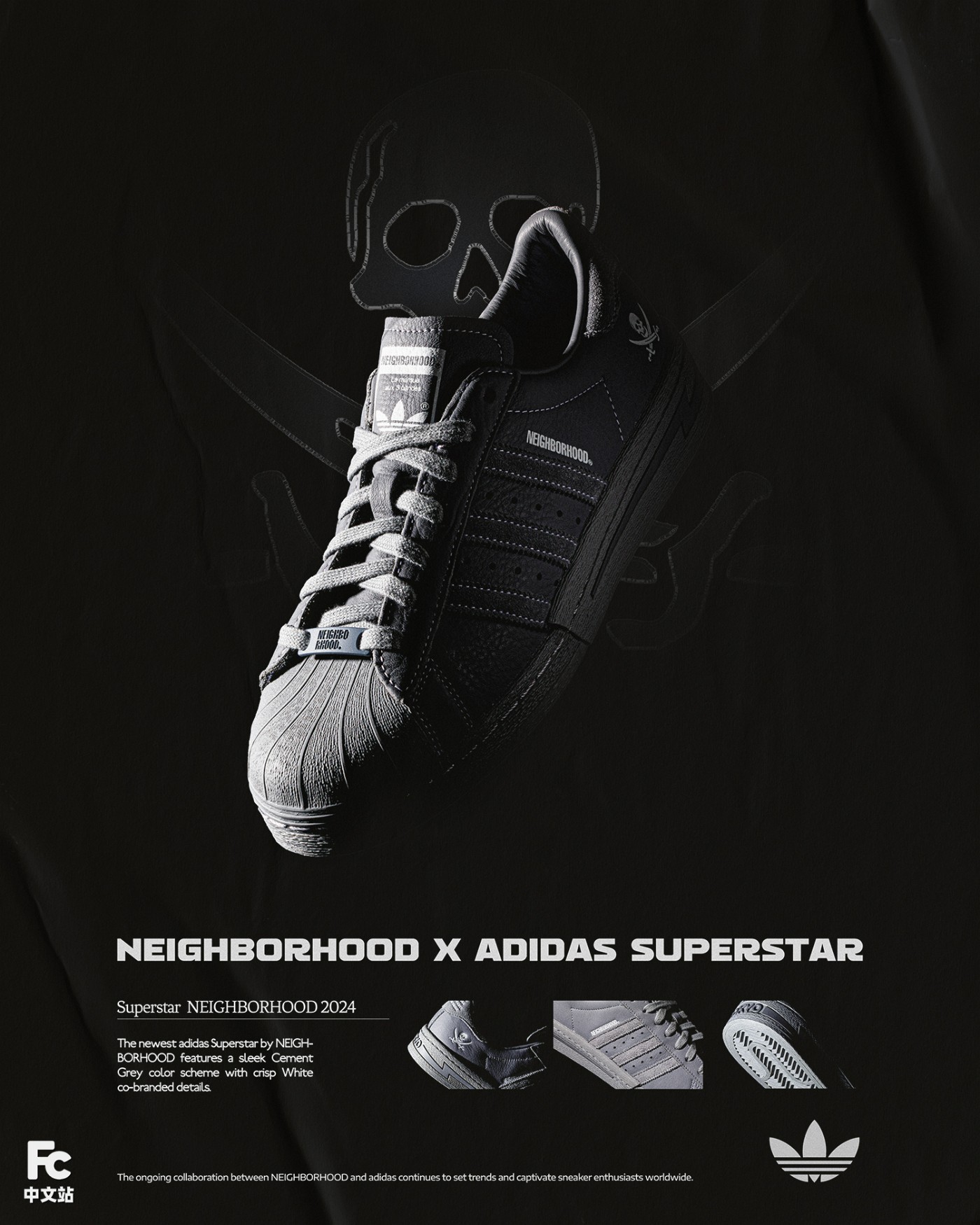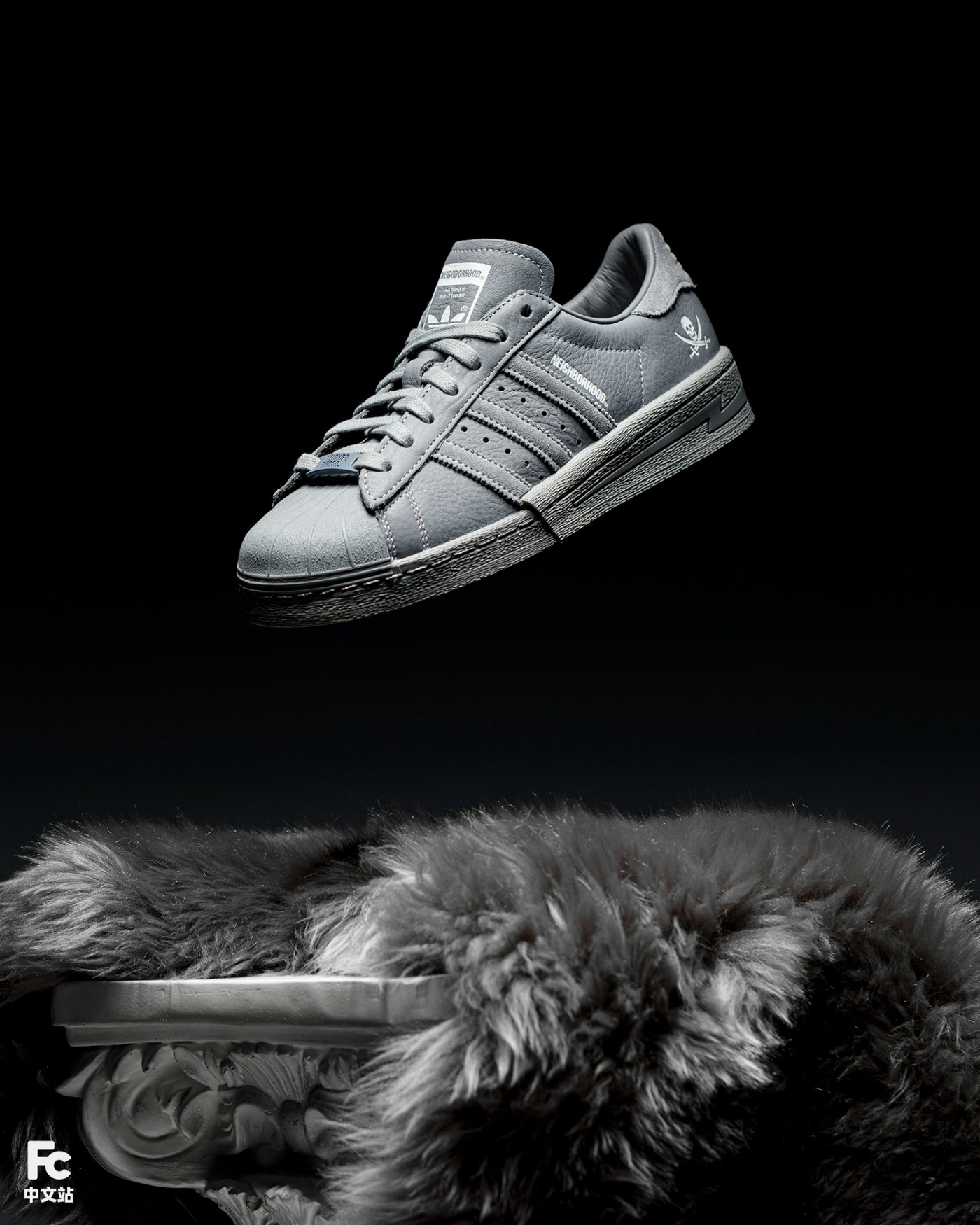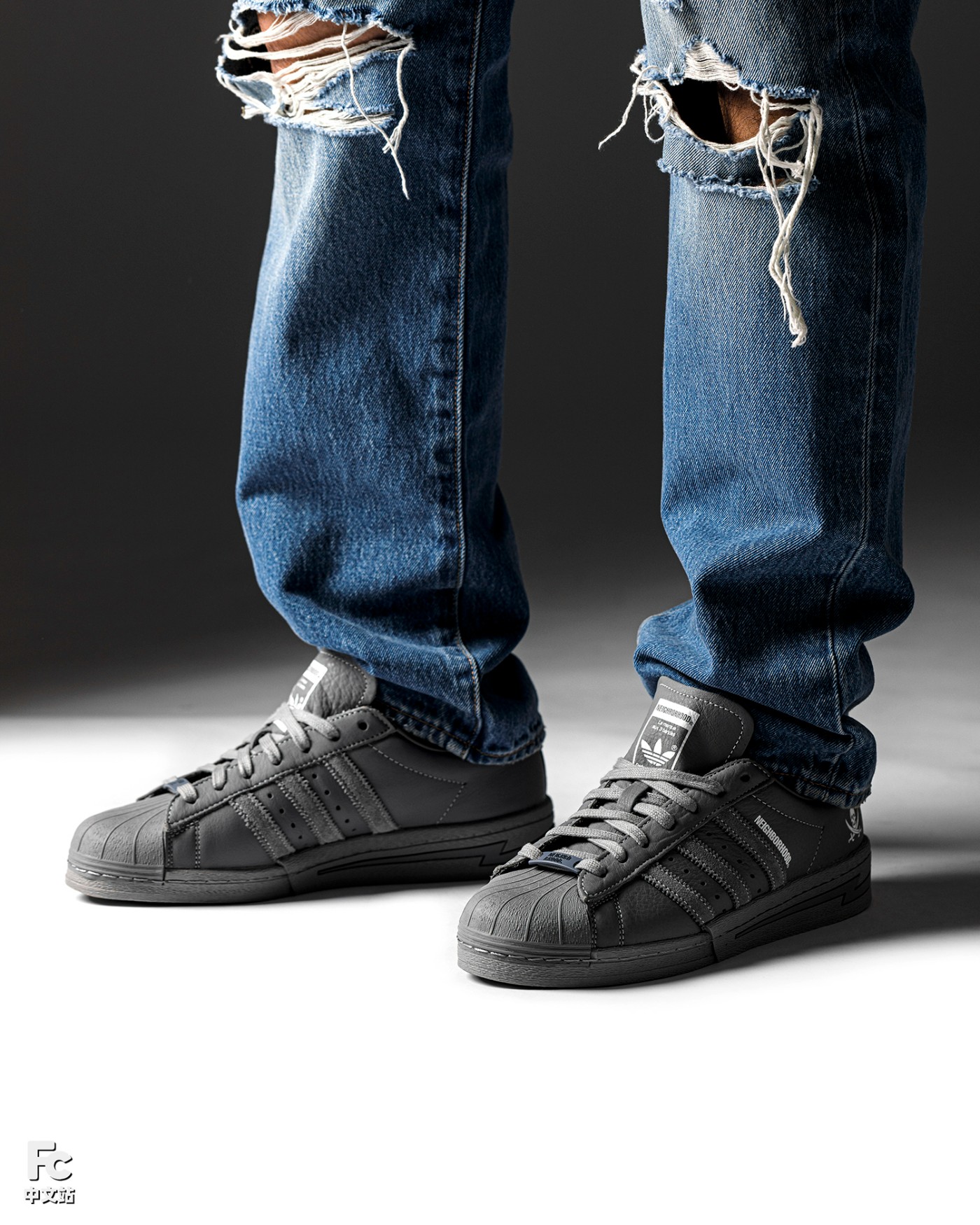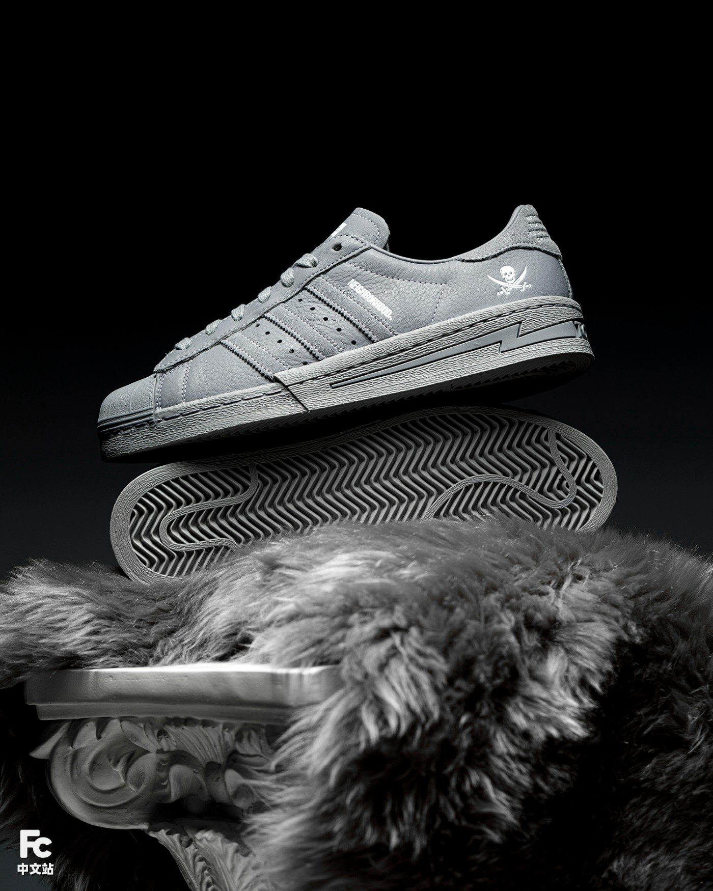 率先登场的全新 Superstar 采用 NEIGHBORHOOD 标志性灰色系呈现。