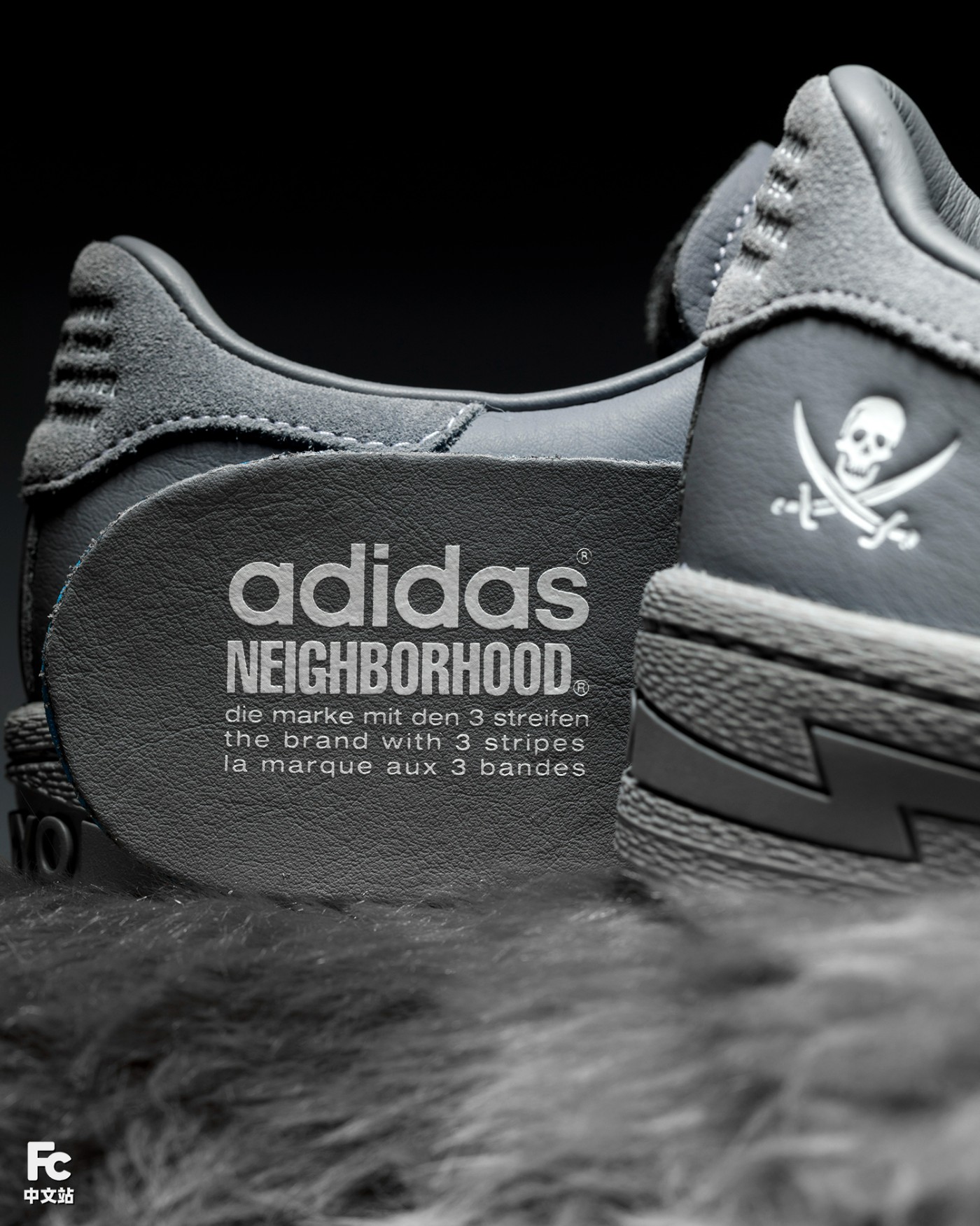 细节部分则以 NEIGHBORHOOD 的骷髅等标志性元素以及特殊鞋带扣点缀。