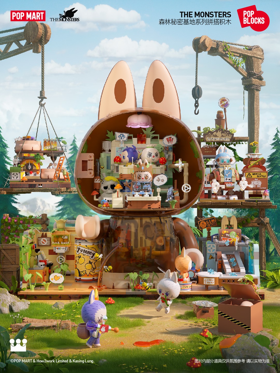 全新「THE MONSTERS 森林秘密基地系列」拼搭积木采用了多场景拼搭设计,共由 5 个不同场景组成。