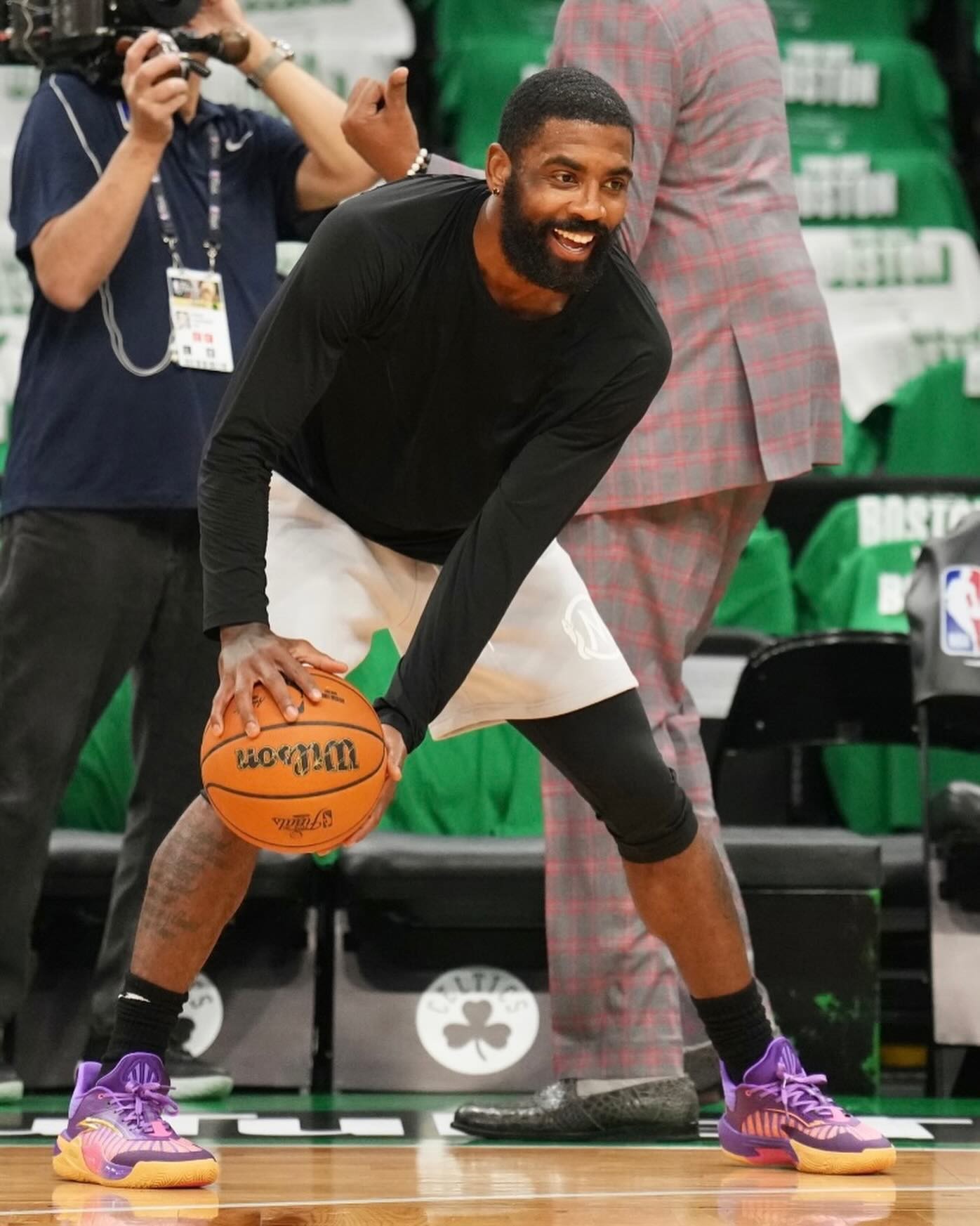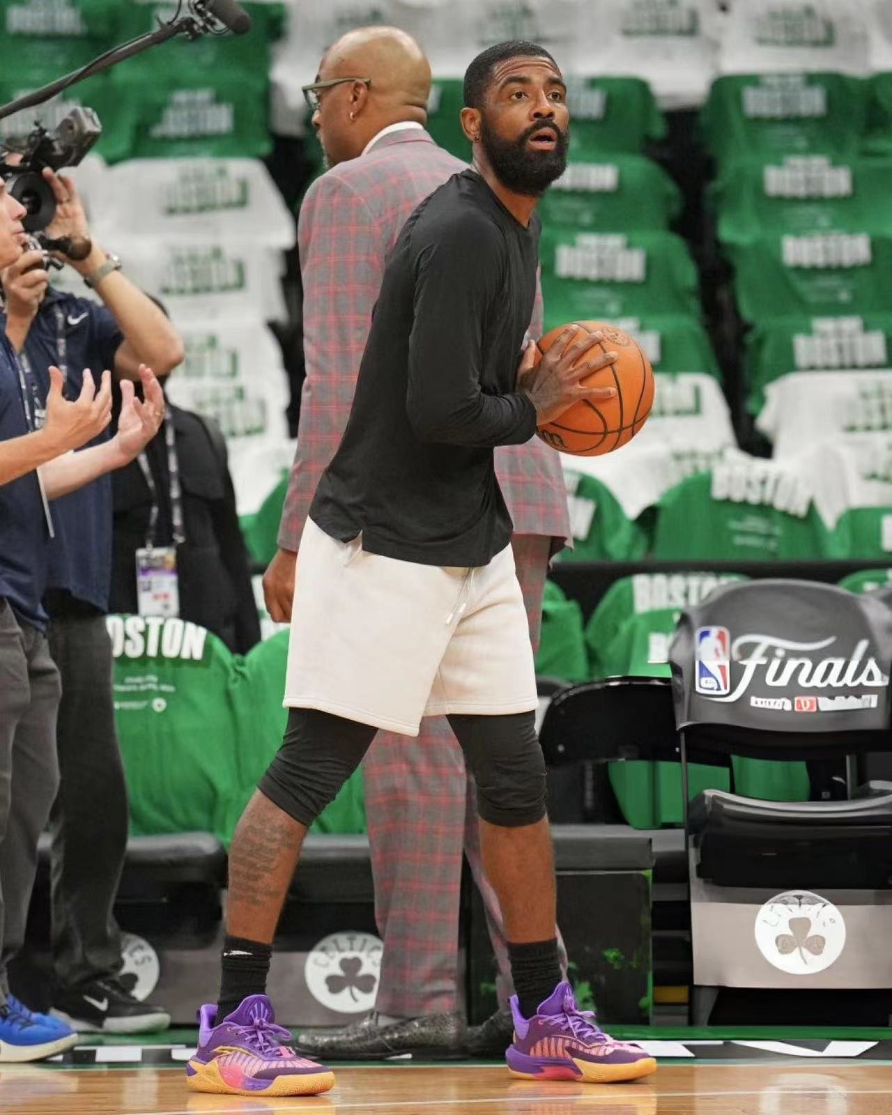 与此同时,伴随今天 NBA 总决赛揭幕战的上演,欧文本人在踩场训练时便率先上脚,让我们先睹为快!