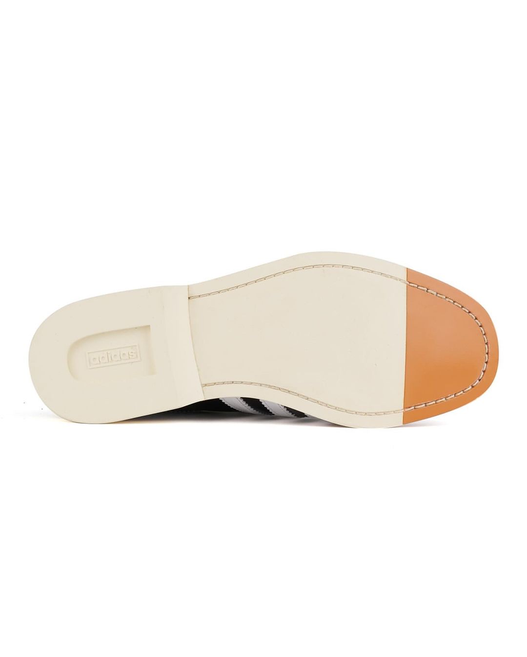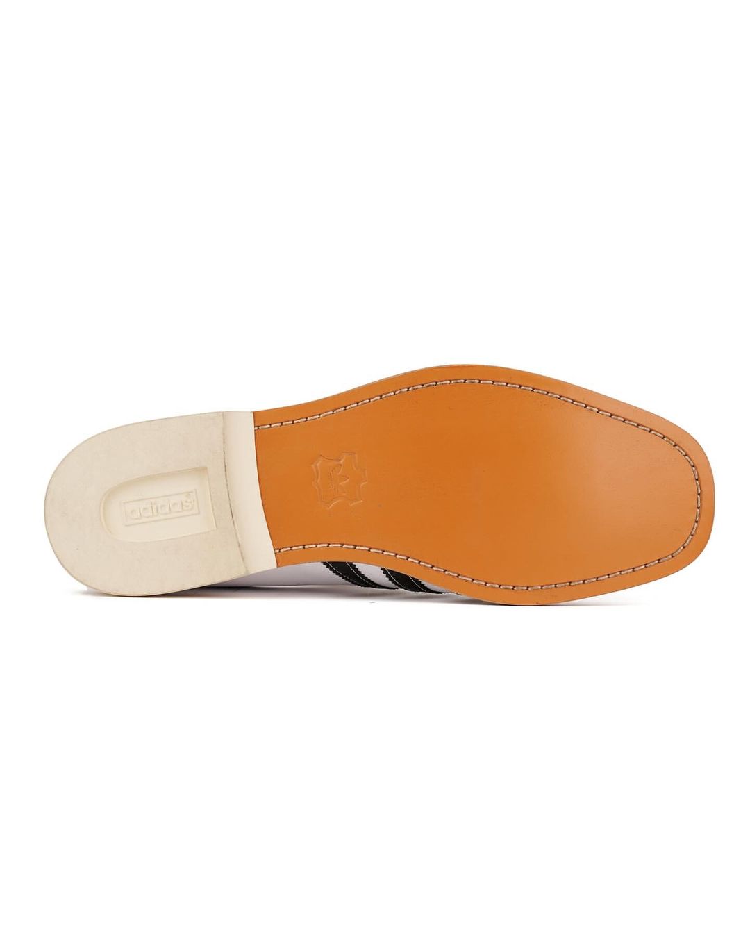 延续了保龄球鞋的外露缝线,再加上皮质鞋底,设计语言与冠希的 CLOT x adidas Originals Superstar 有几分相似。