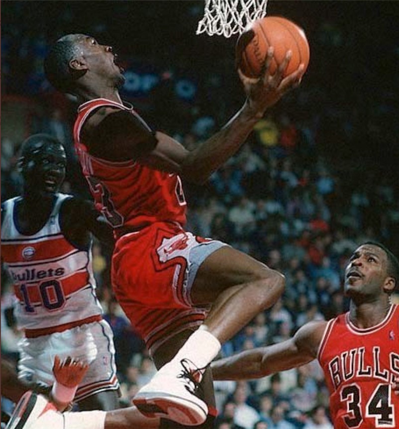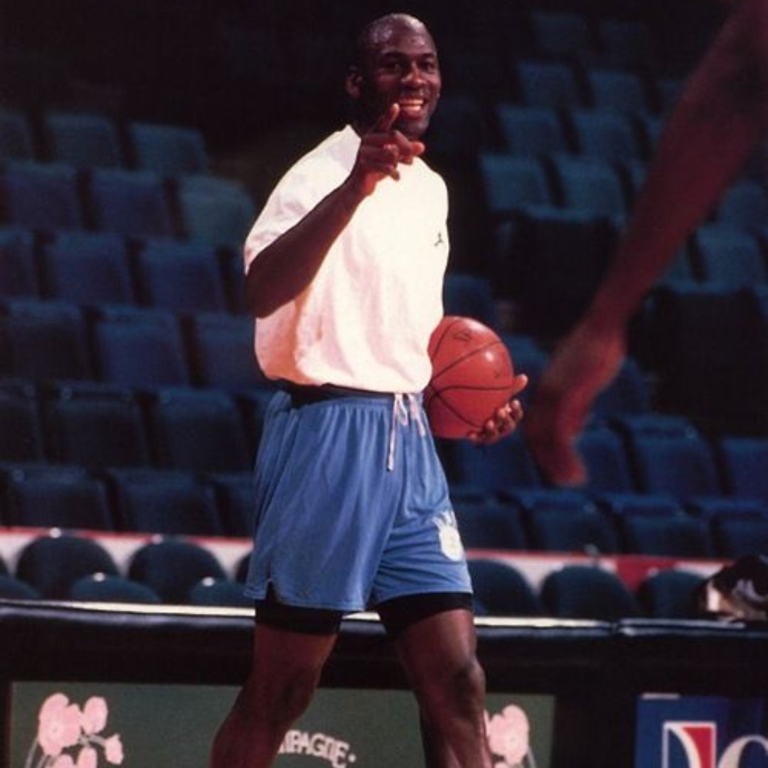 而在当年率领北卡大学夺得 NCAA 冠军后,踏上 NBA 赛场时,乔丹还有一个癖好,将北卡训练短裤穿在公牛比赛球裤之中,就好像是 “护身符” 一样,给自己额外叠上一层 Buff。