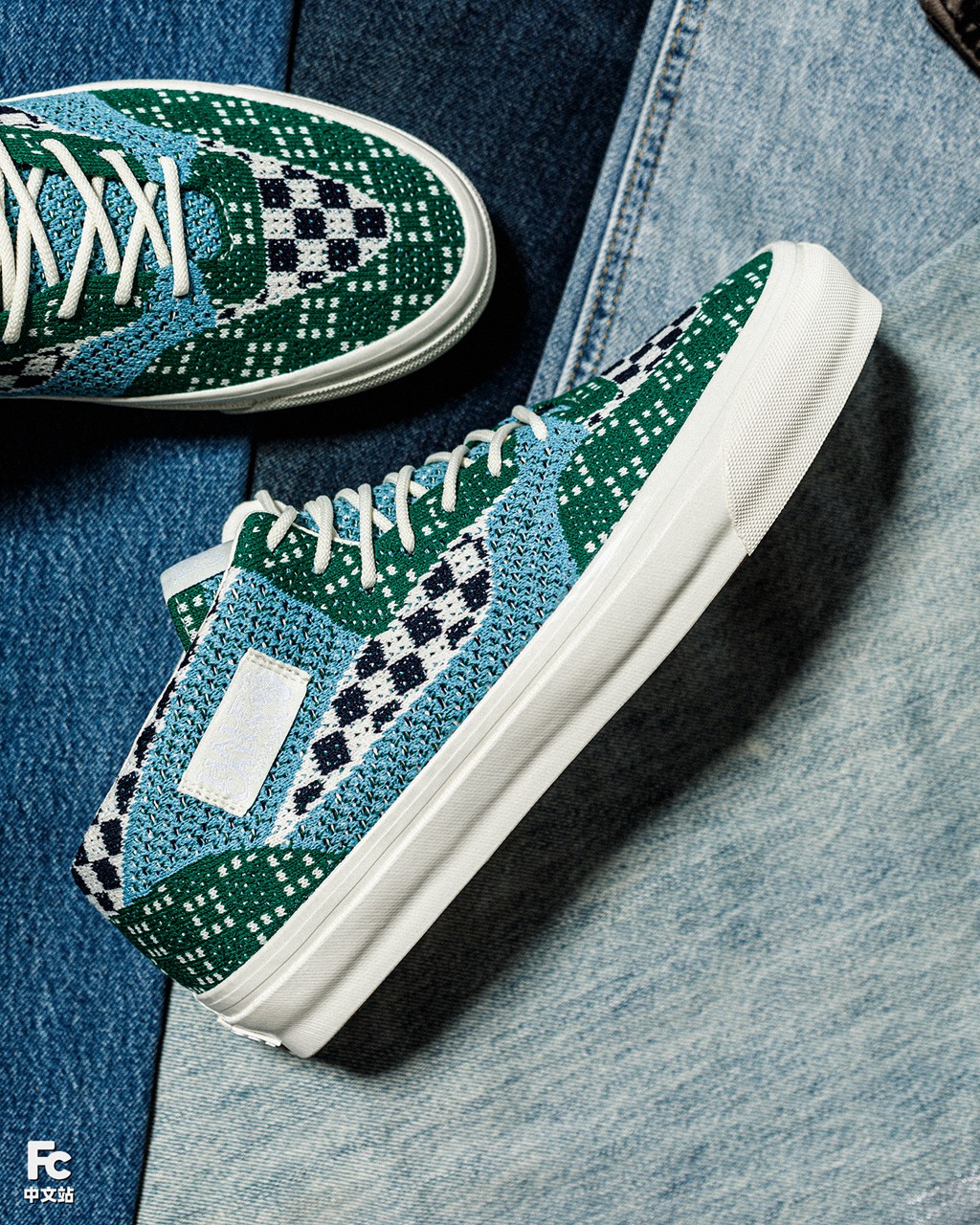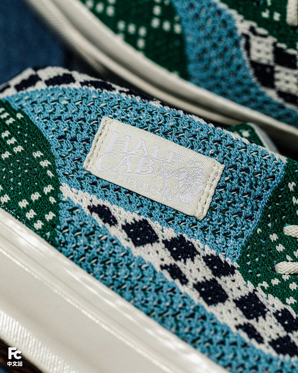 鞋身点缀标志性的黑白棋盘格纹理和 Halfcab 刺绣织唛,彰显鞋款身份。