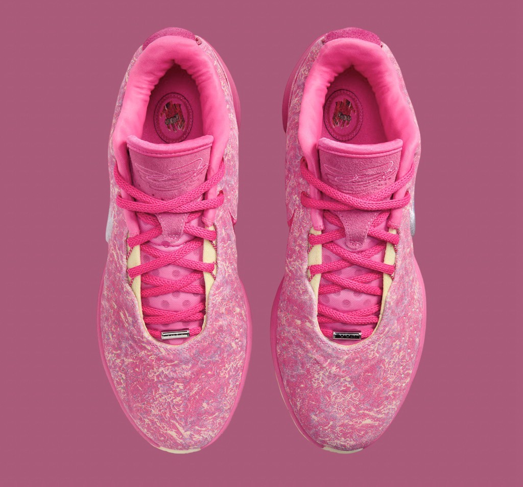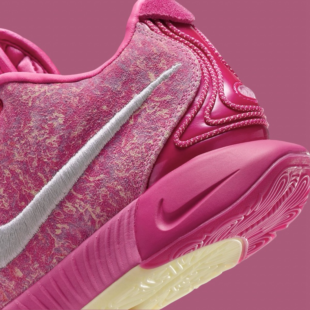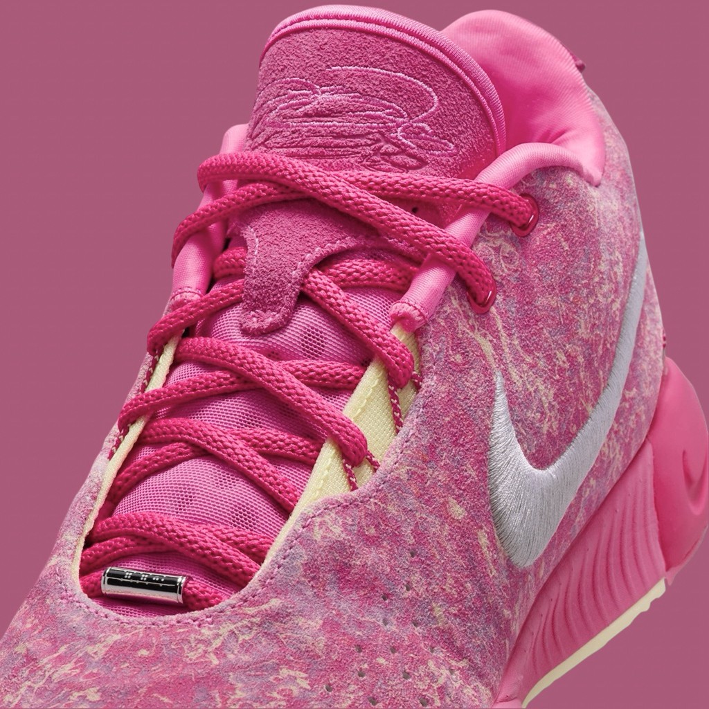 伴随着詹姆斯亲晒 LeBron 22 的测试 Sample,意味着 21 代的周期即将结束,新配色也是且买且珍惜。 比如近日曝光的这双骚粉色,即将于下月发售。 不过这双不是简单的纯色设计,鞋面依旧是这一代标志性的牡蛎壳纹理,显得高级感十足。 并且鞋面还是麂皮材质,质感这块稳稳拿捏。 半透明外底为粉色和奶油色拼接,有种奶油雪糕的既视感。 据悉,全新 Nike LeBron 21 “Pink Multi” 将于 7 月登场,具体日期暂未释出,各位不妨保持期待。