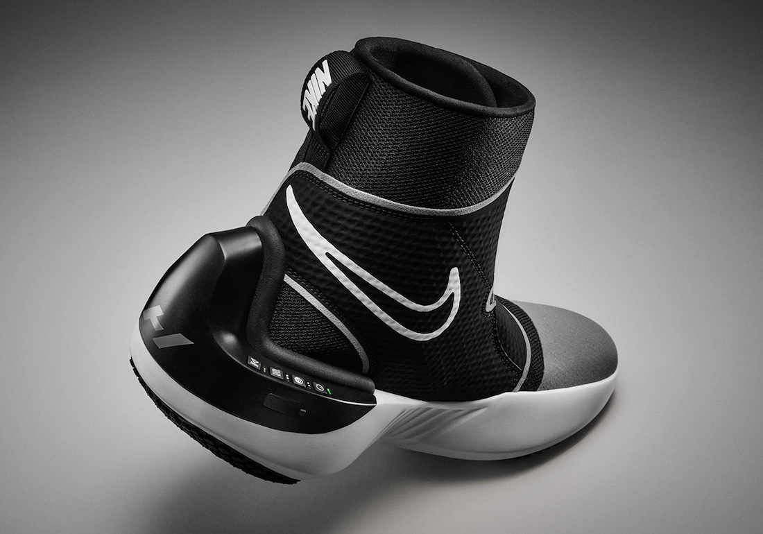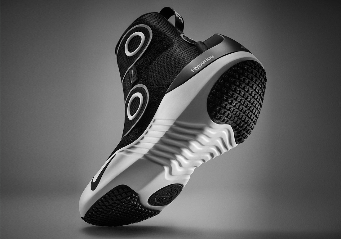 Nike x Hyperice 合作鞋款是一双可穿戴和移动的高帮鞋(设备),可为运动员的双脚和脚踝提供加热和动态空气压缩按摩。