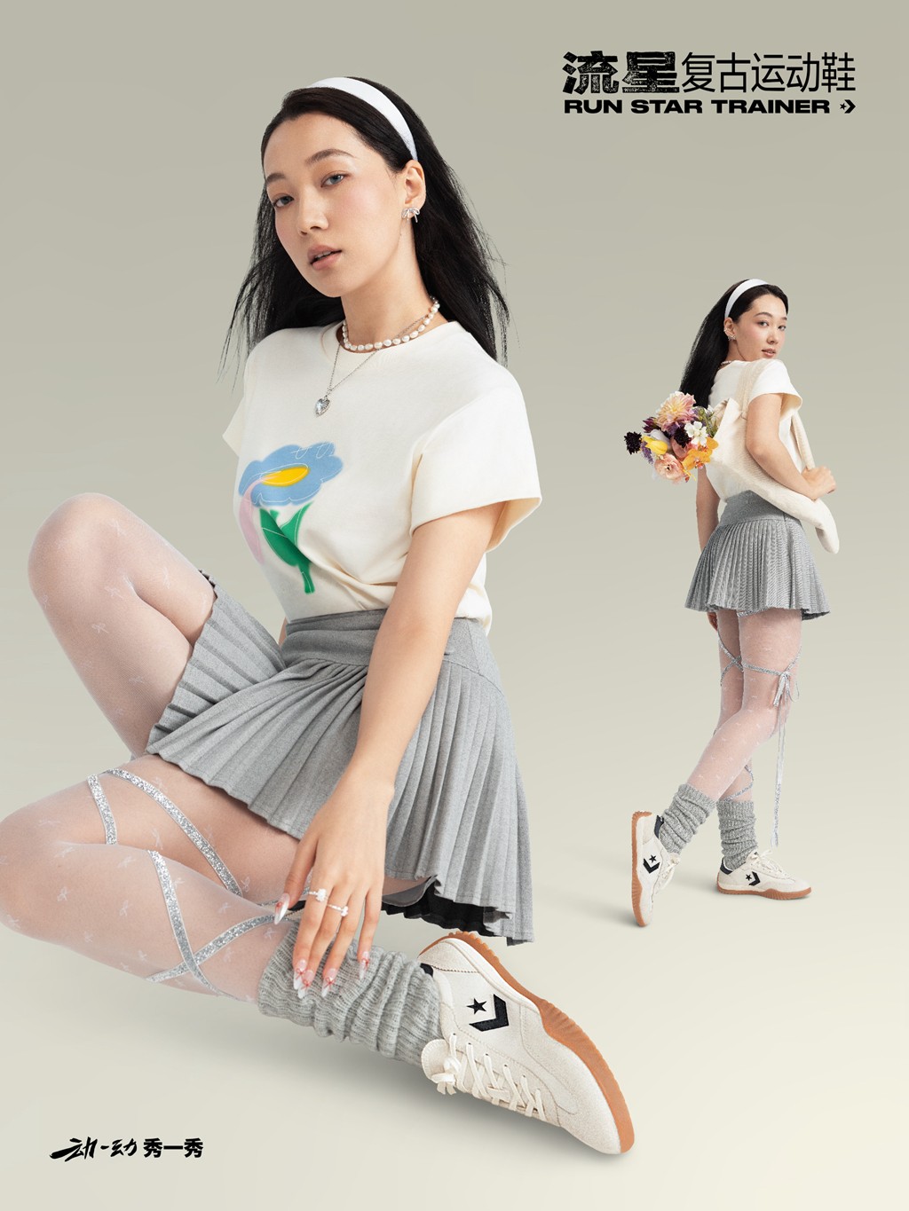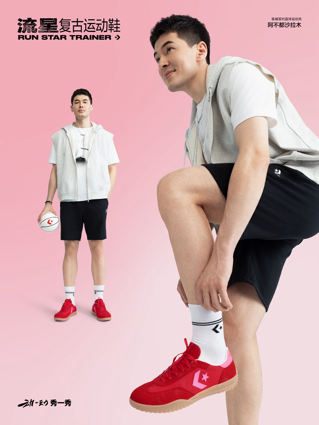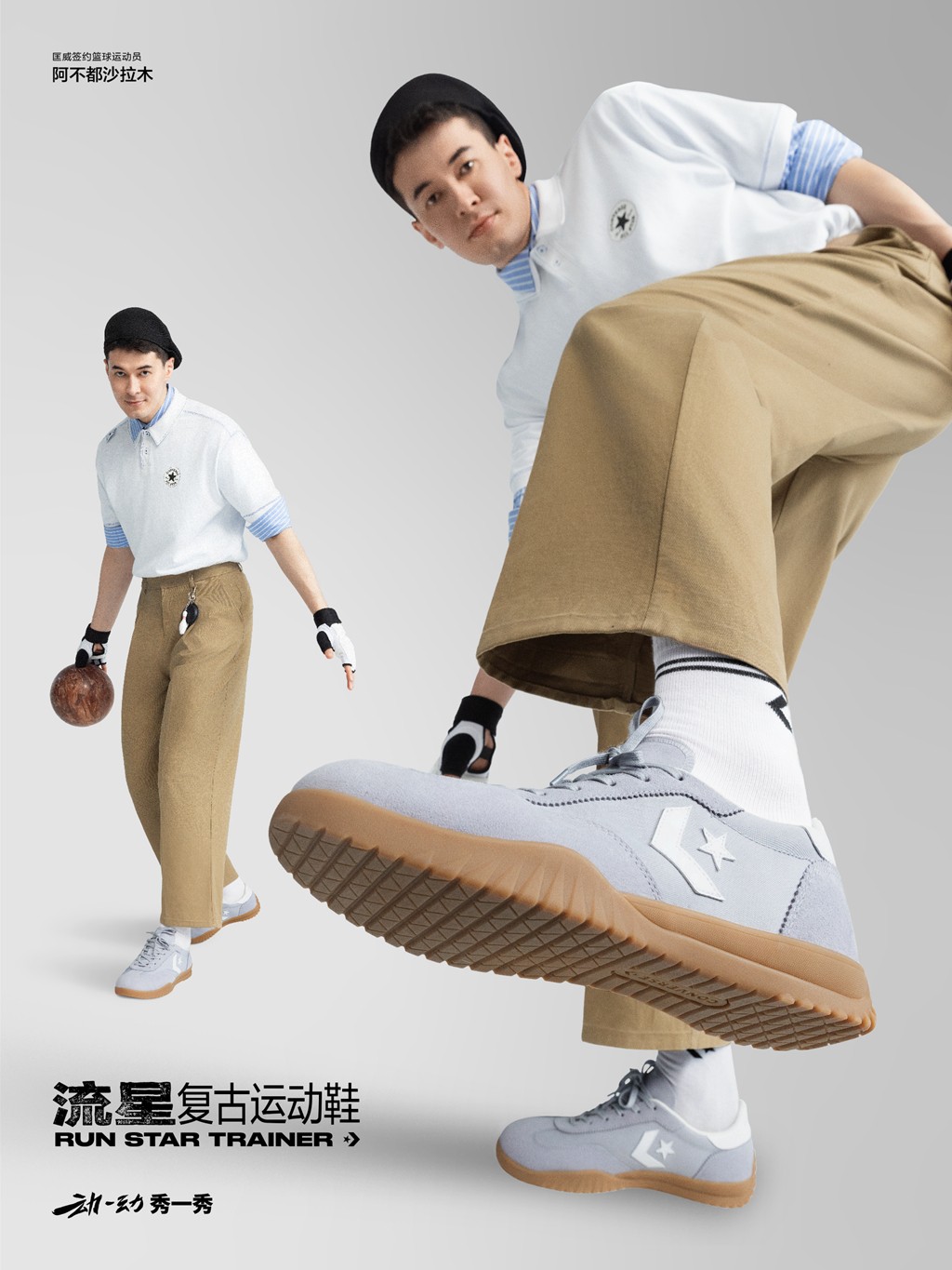 Converse 签约球员,中国男篮主力阿不都沙拉木上脚「Run Star Trainer 流星复古运动鞋」展示了几组日常 LOOK。