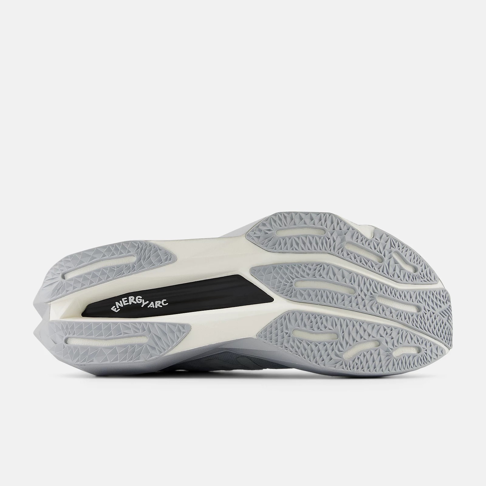 几何切割形厚底融合 New Balance FuelCell 中底科技,打造足部的能量回弹,Energy Arc 则结合了加强筋几何构造的全掌碳板,辅以镂空中底,提升能量储存和释放。