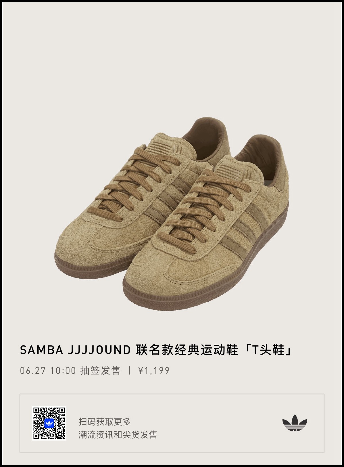 预热多时的 JJJJound x adidas Originals Samba 终于要来了,双方第二波合作系列将于 6 月 27 日登场。