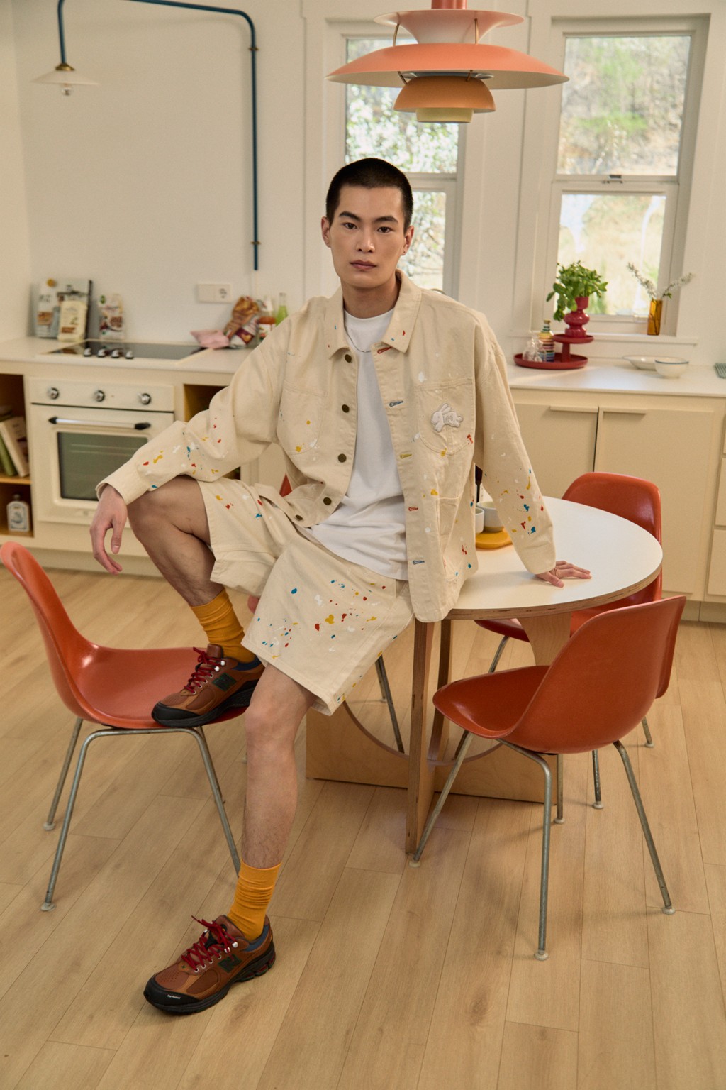 彩色泼墨的联名夹克和卡朋特长、短裤同样别具一格,充满浪漫的艺术气息,还都配有限定的帆布材质 KARORO 兔子徽标,彰显联名身份。