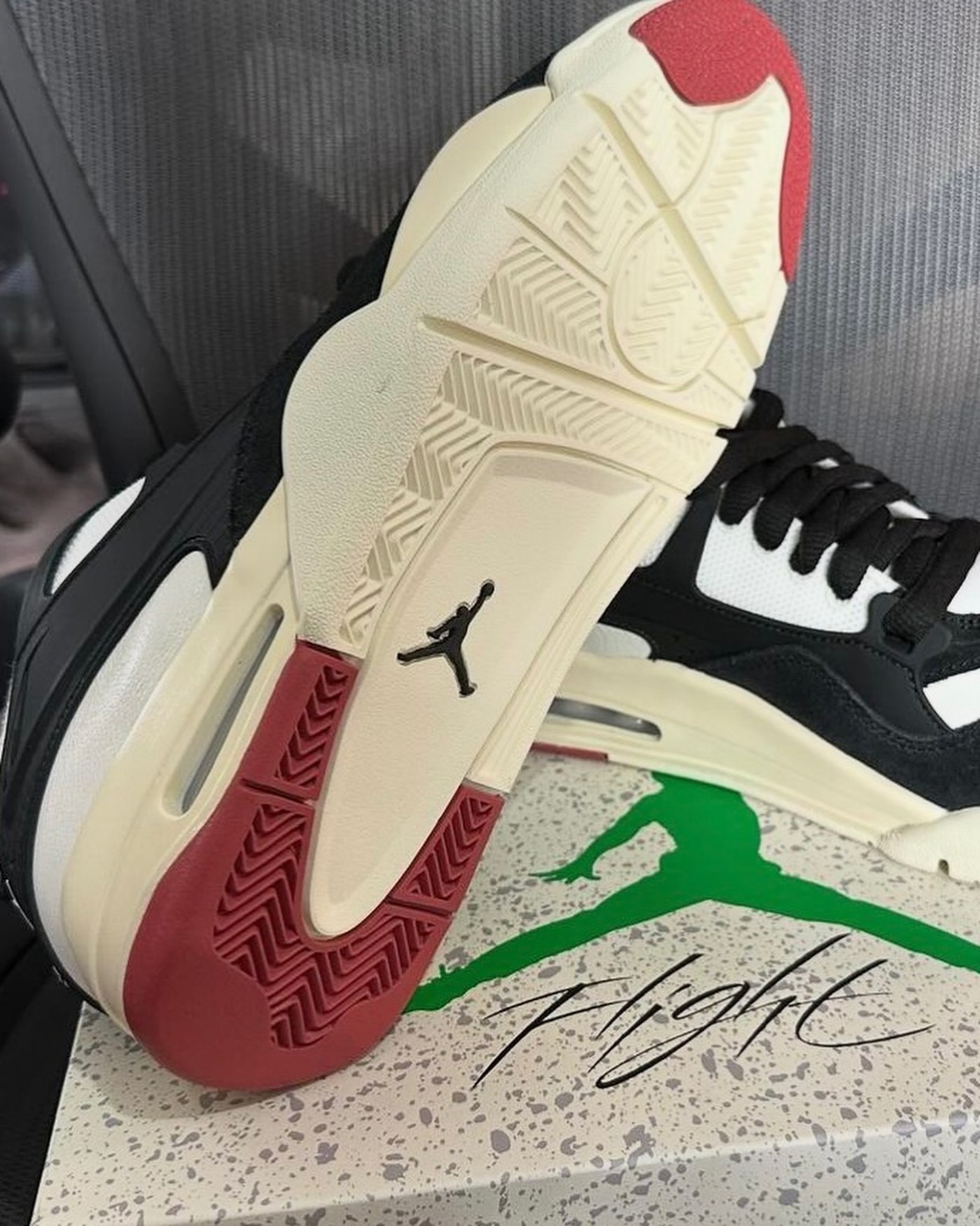 近日一款熊猫配色的最新实物浮现网络,鲜明的撞色风格,加之尼龙网布、翻毛皮、橡胶框架的多重材质,恰到好处平衡了 AJ4RM 复古与前卫的对撞。