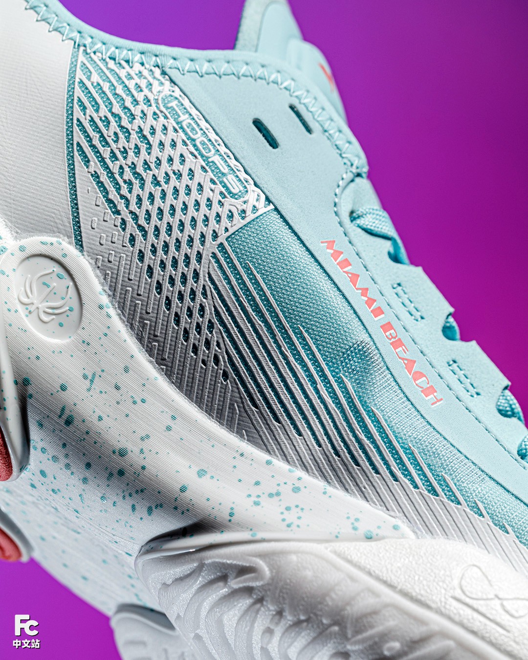 鞋内侧更是直接印上了迈阿密沙滩的英文,作为细节点缀。