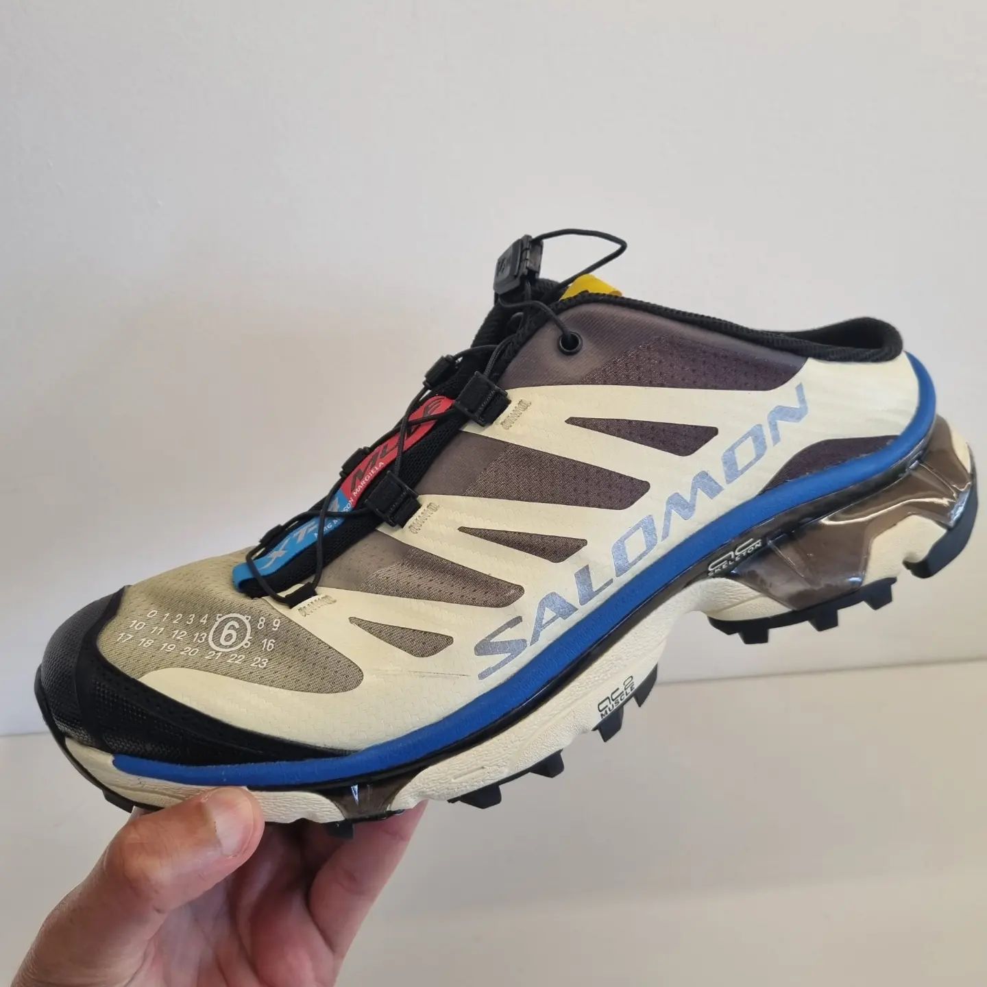XT-4 MULE 选择了热门的越野跑鞋 XT-4 进行重新设计,通过更加休闲的 MULE 鞋型呈现,鞋头部位则是 MM6 的 Logo。