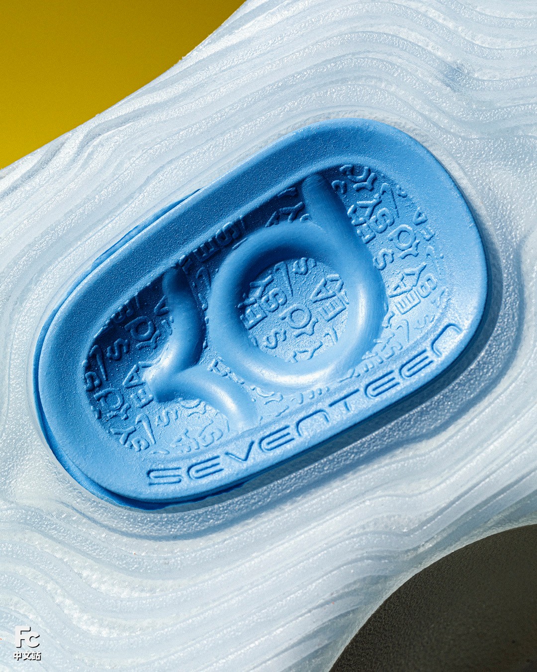 外底中心的橡胶上,也都是和鞋面细节呼应的元素,此外还标注了 Seventeen,代表代数。