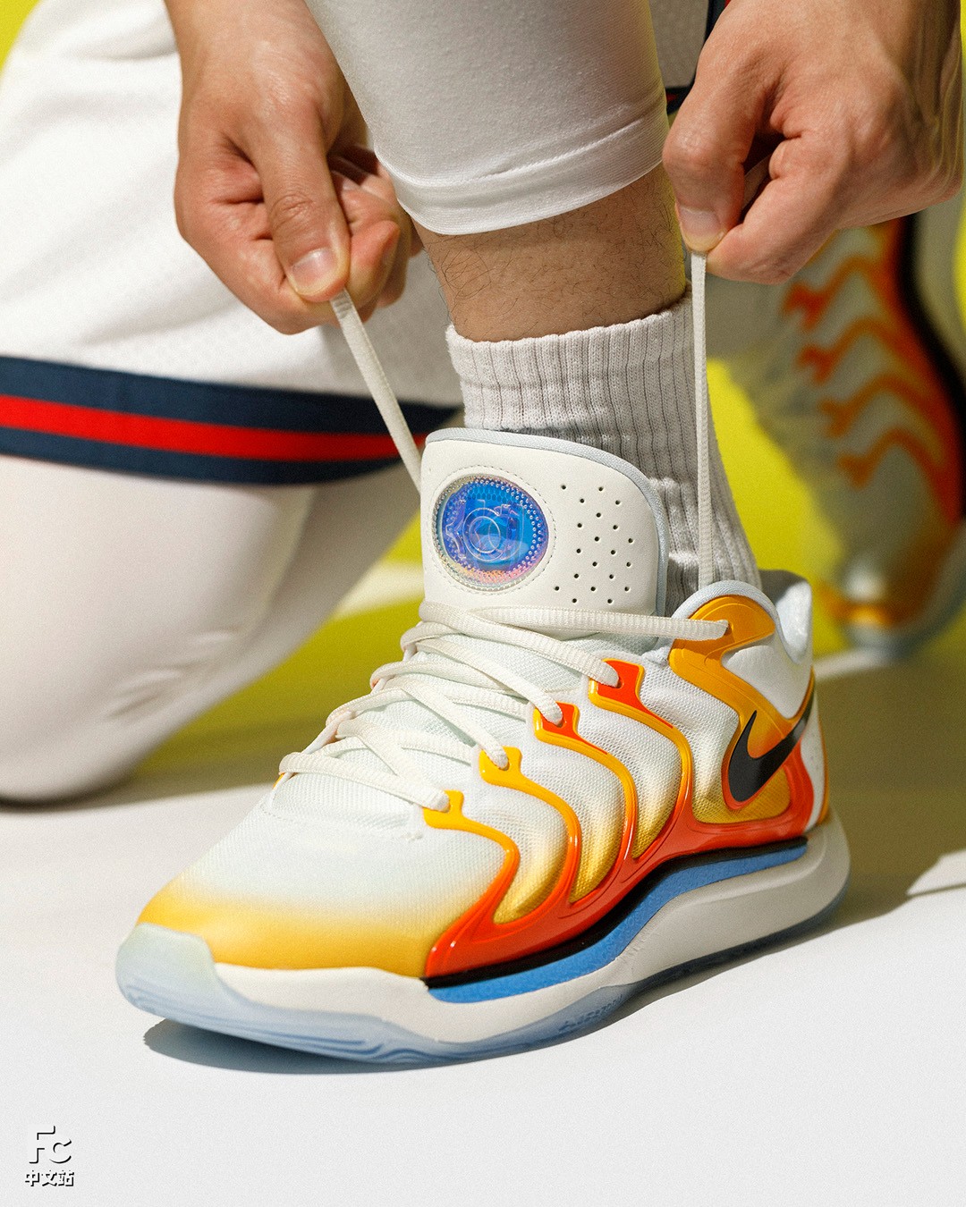 说到配色,可以说这次 Nike 留下了充足的解读空间,首先 Sunrise 日出,很容易就对应到杜兰特目前的母队菲尼克斯太阳队。