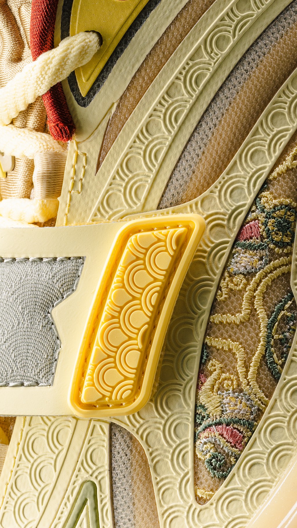 最大的亮点在于鞋身融入了丰富的古风元素,从古代纹样中汲取灵感。