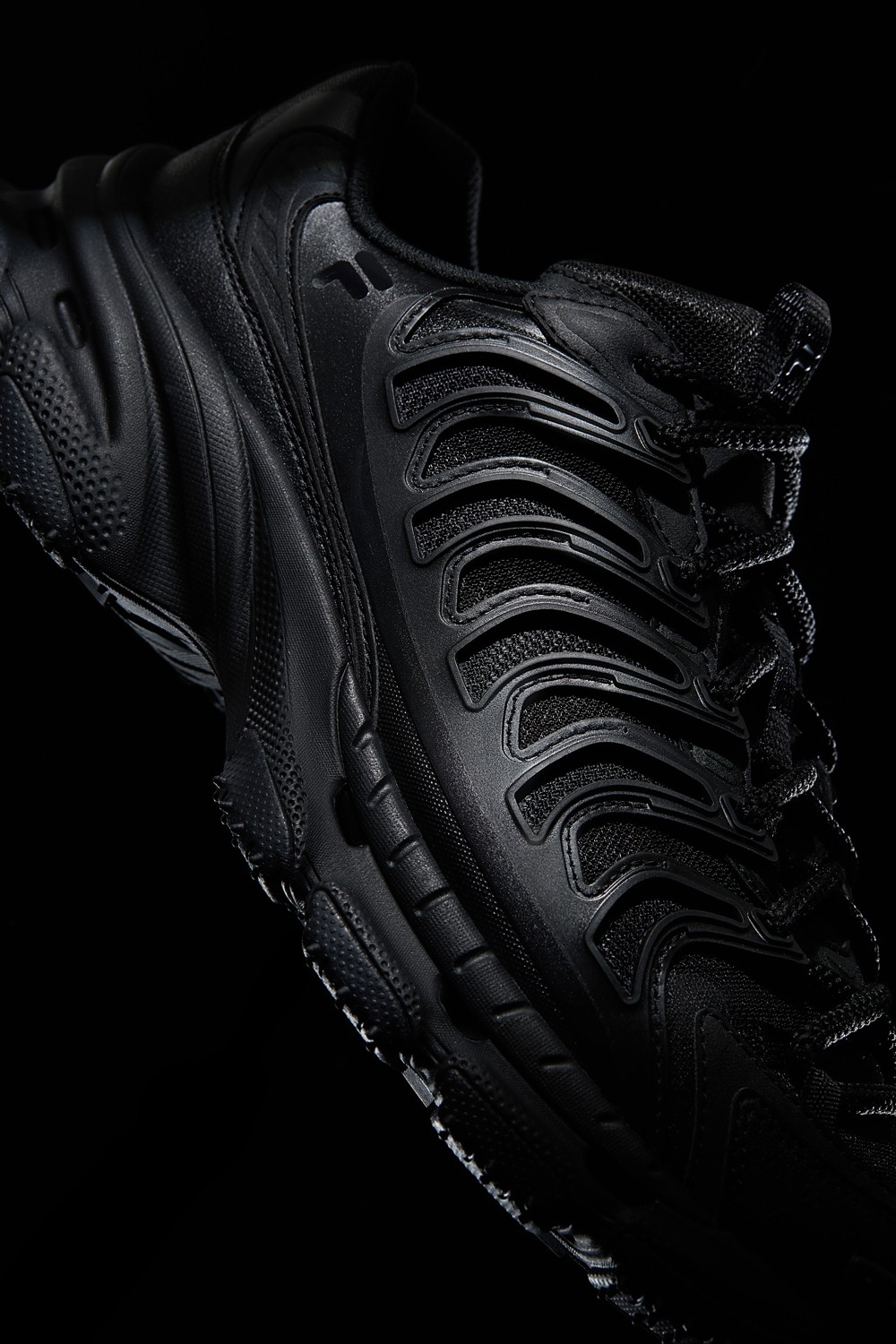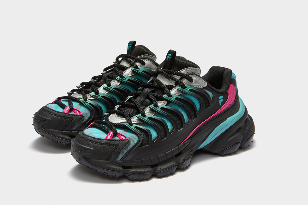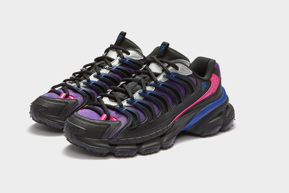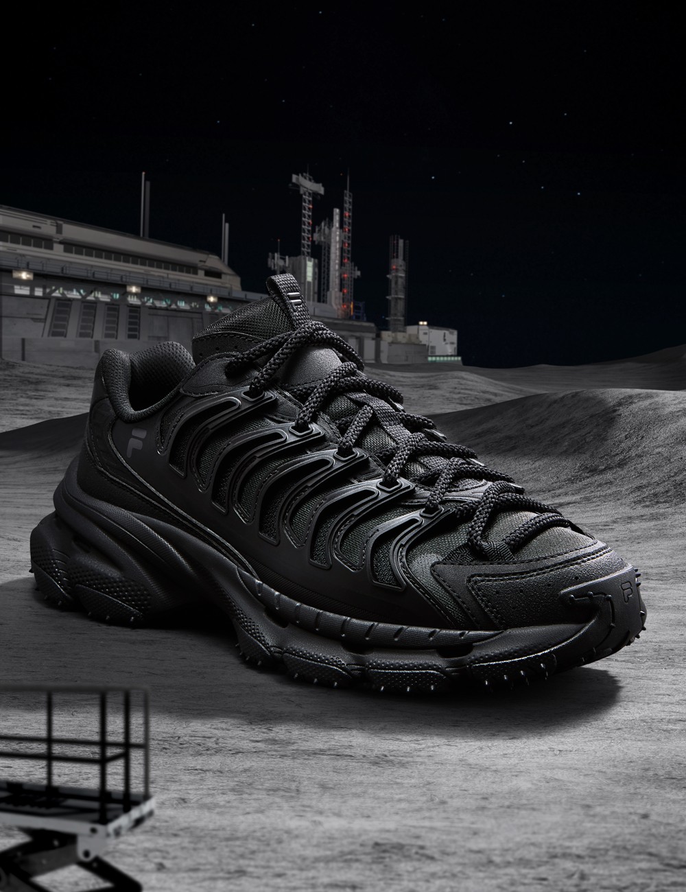 此次限量发售的 FILA FUSION BRACKET 星舰鞋,采用极具酷感的「星舰黑」色覆满鞋身。